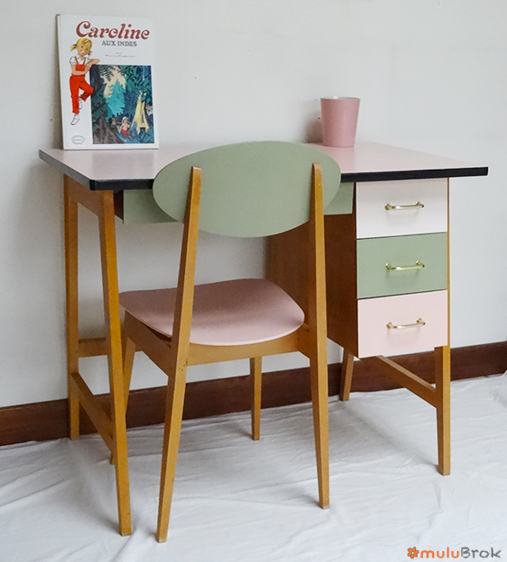 Rénové et revisité, coloris choisis par Margaux : Vert de gris, Rose Layette et Rose Ruban.