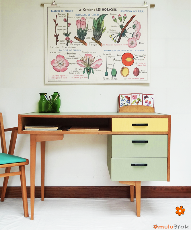 Bureau vintage 3 tiroirs et 1 grande niche.