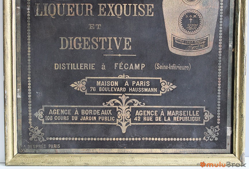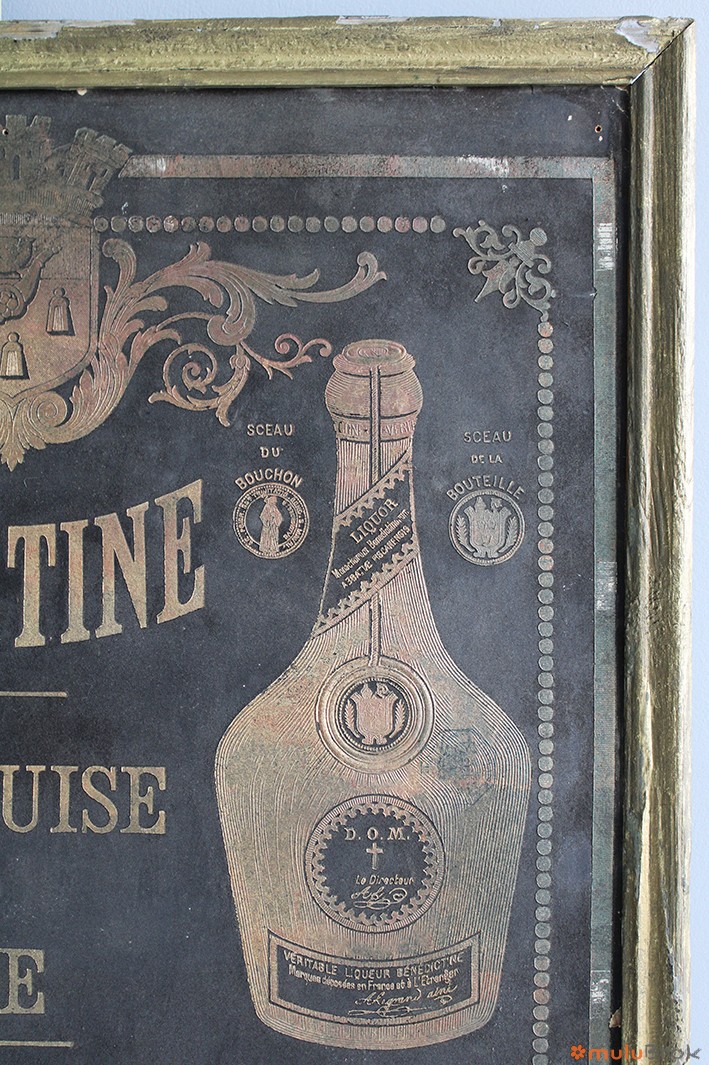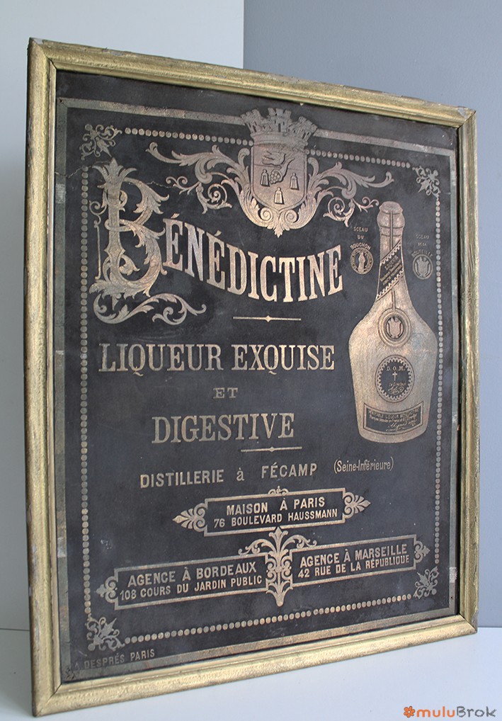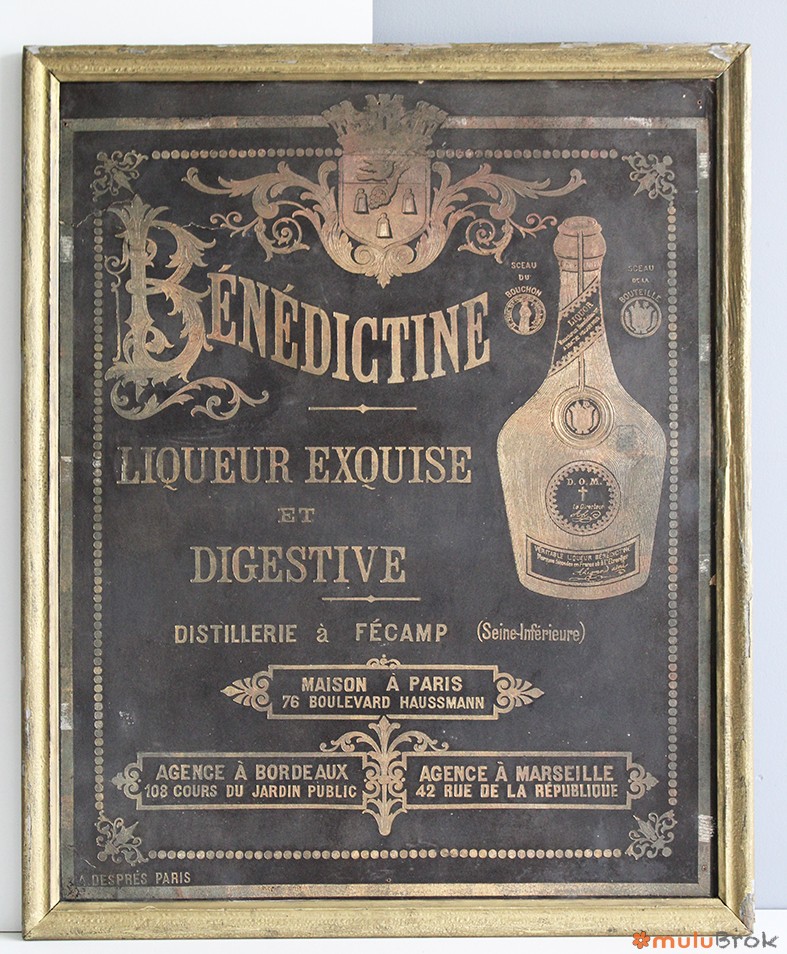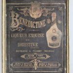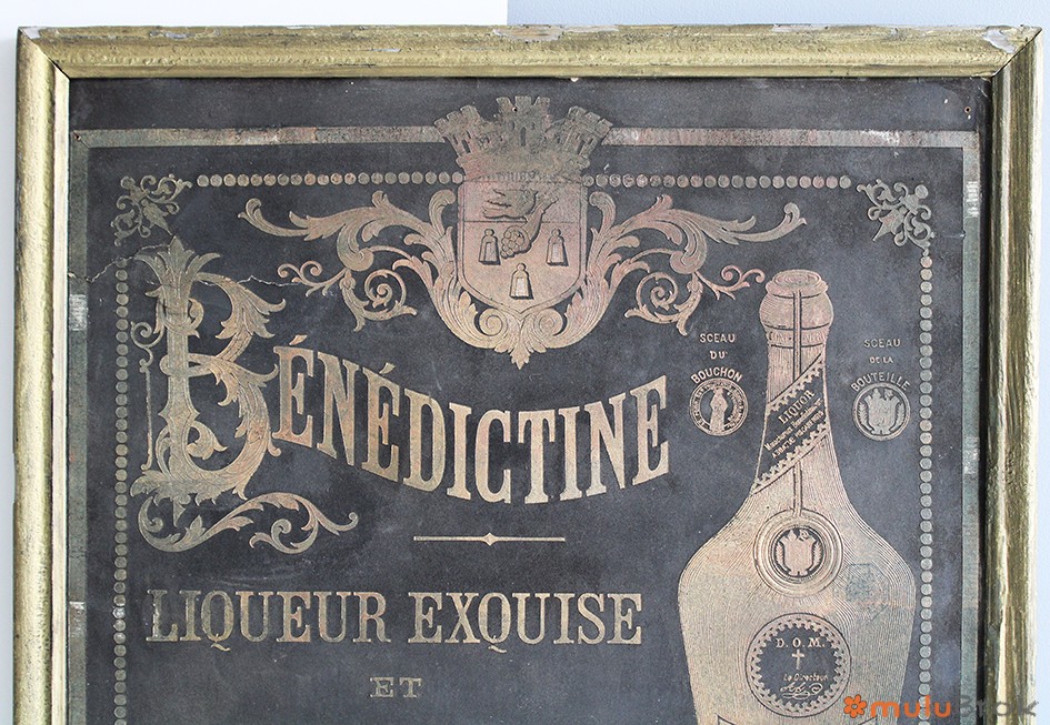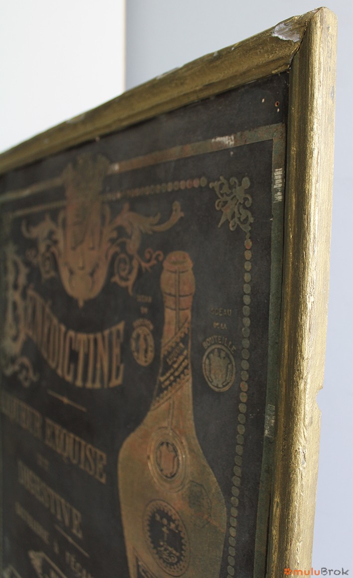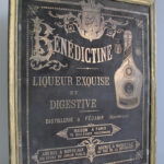 Ancien panneau publicitaire Bénédictine sous cadre.