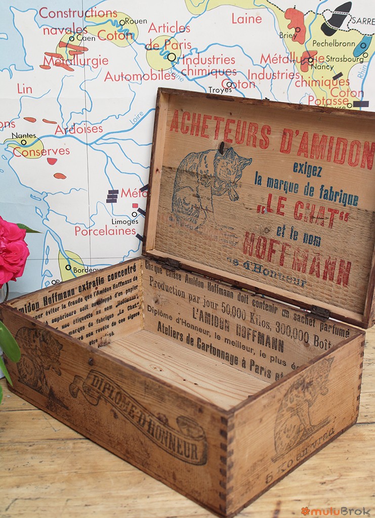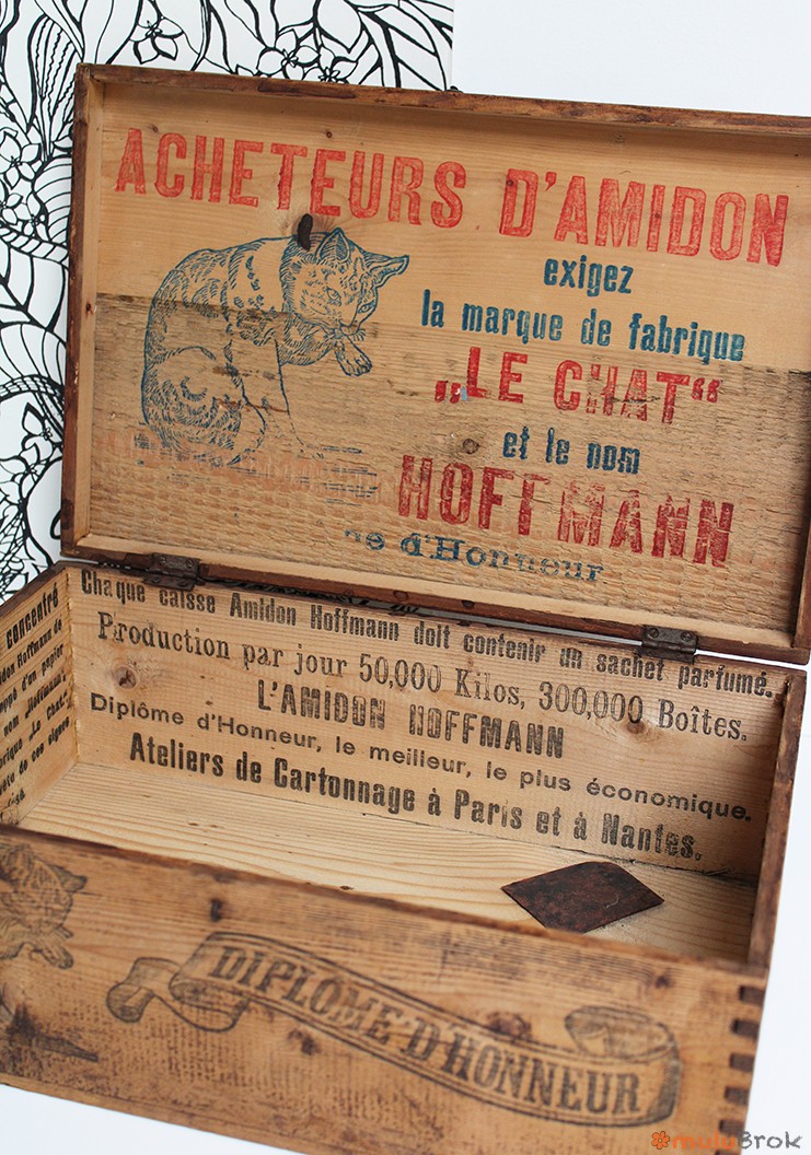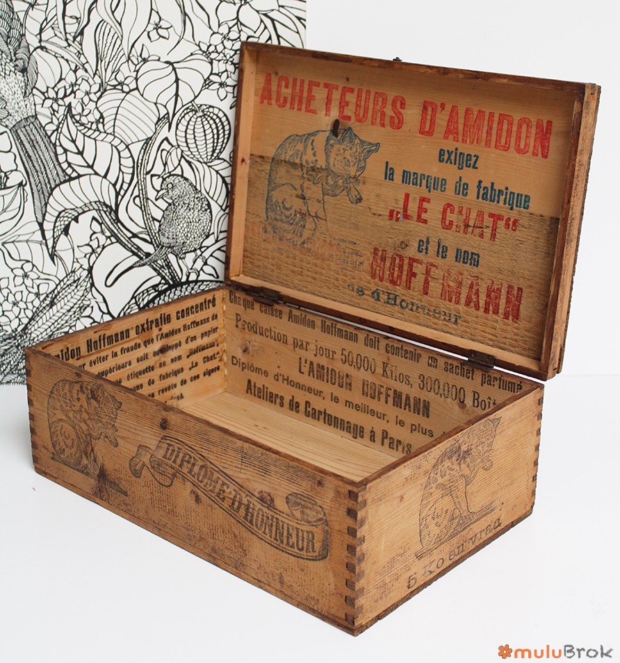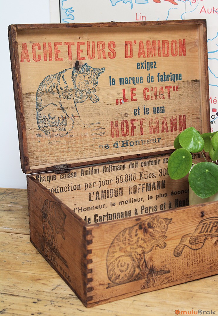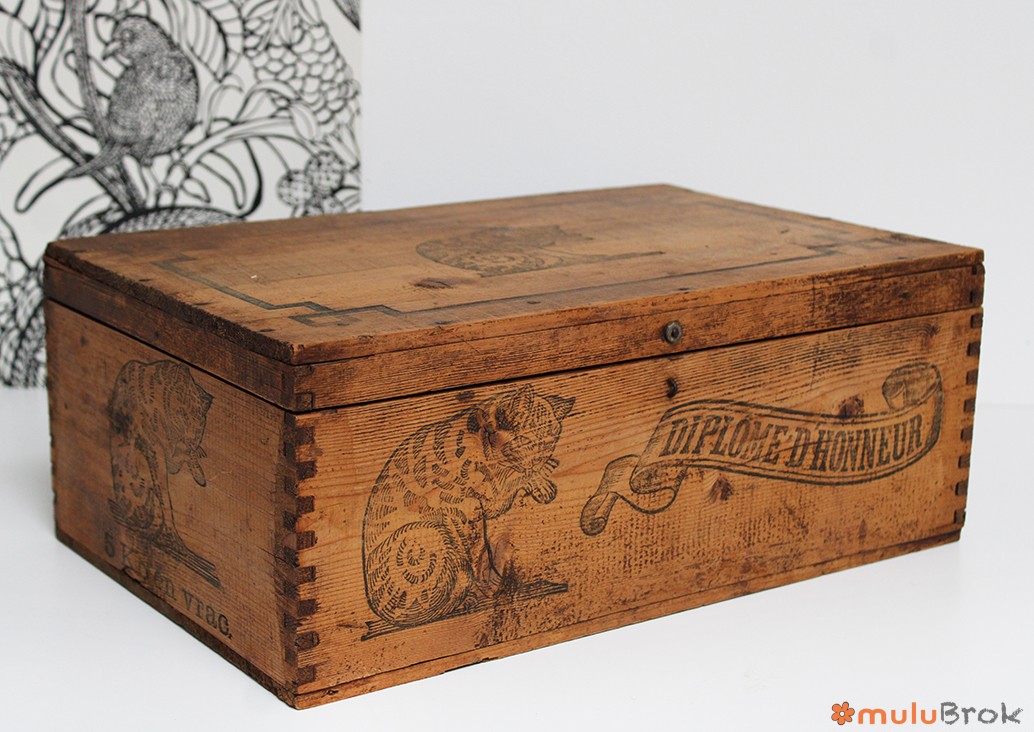 Belles illustrations, cette caisse publicitaire est en bon état.