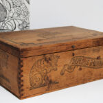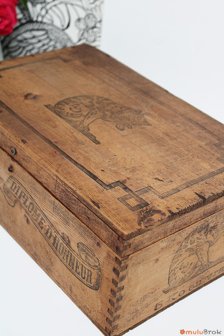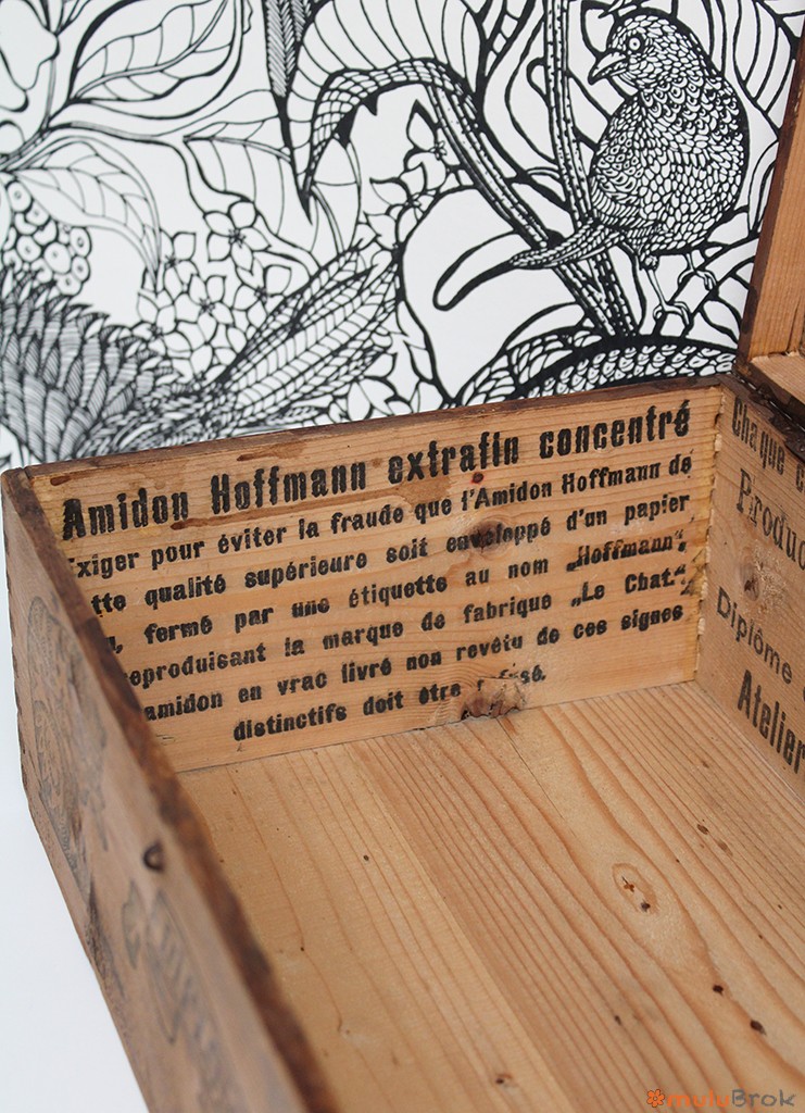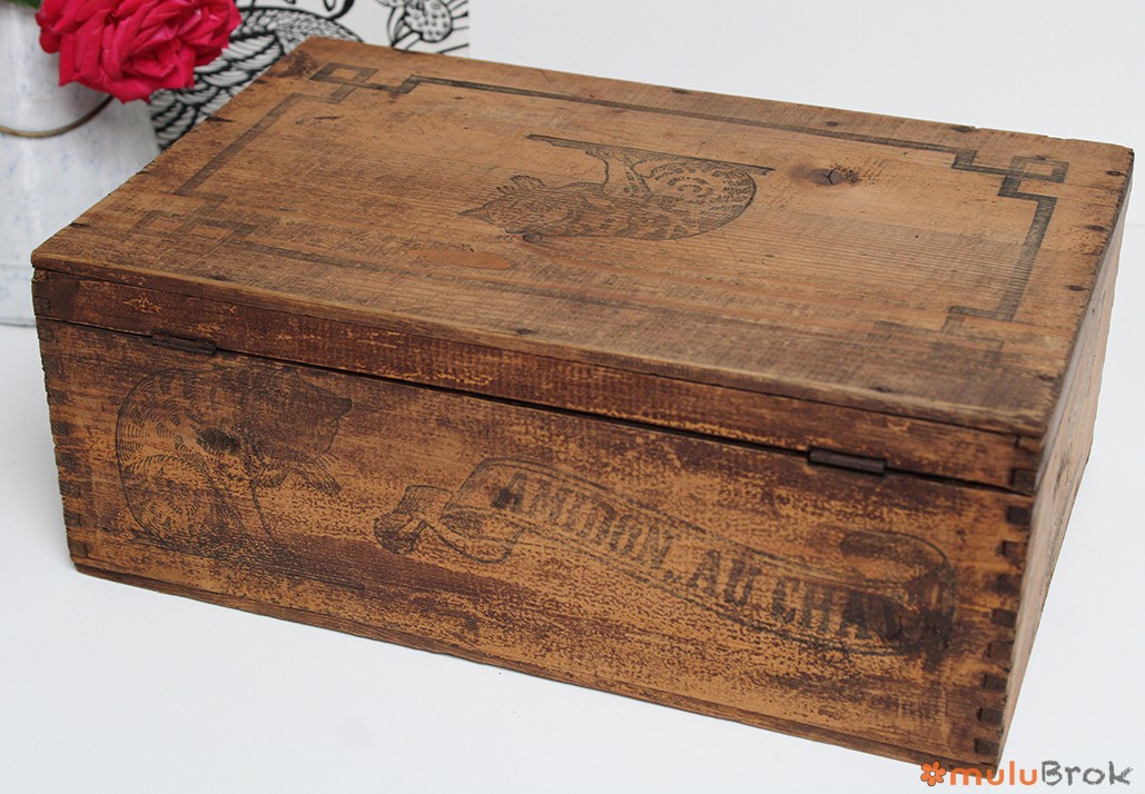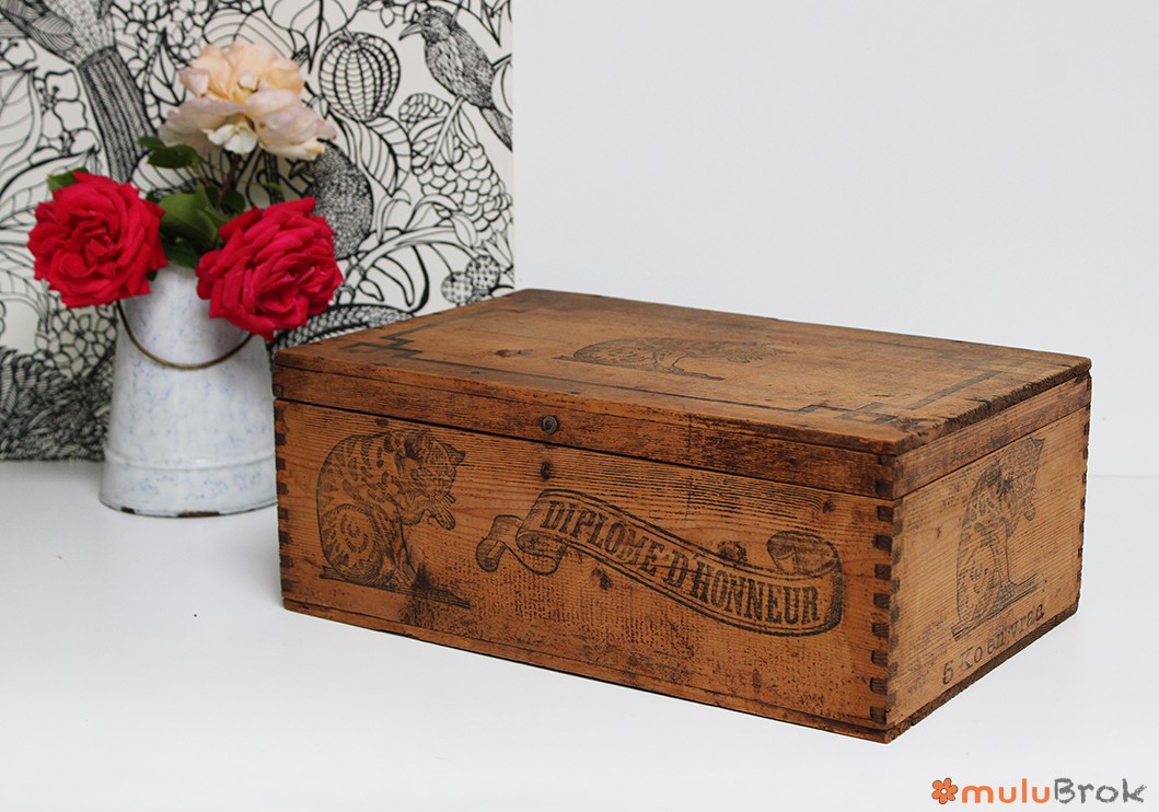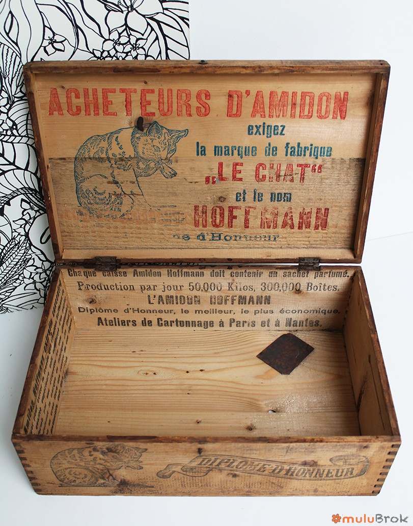 Belles illustrations, cette caisse publicitaire est en bon état.