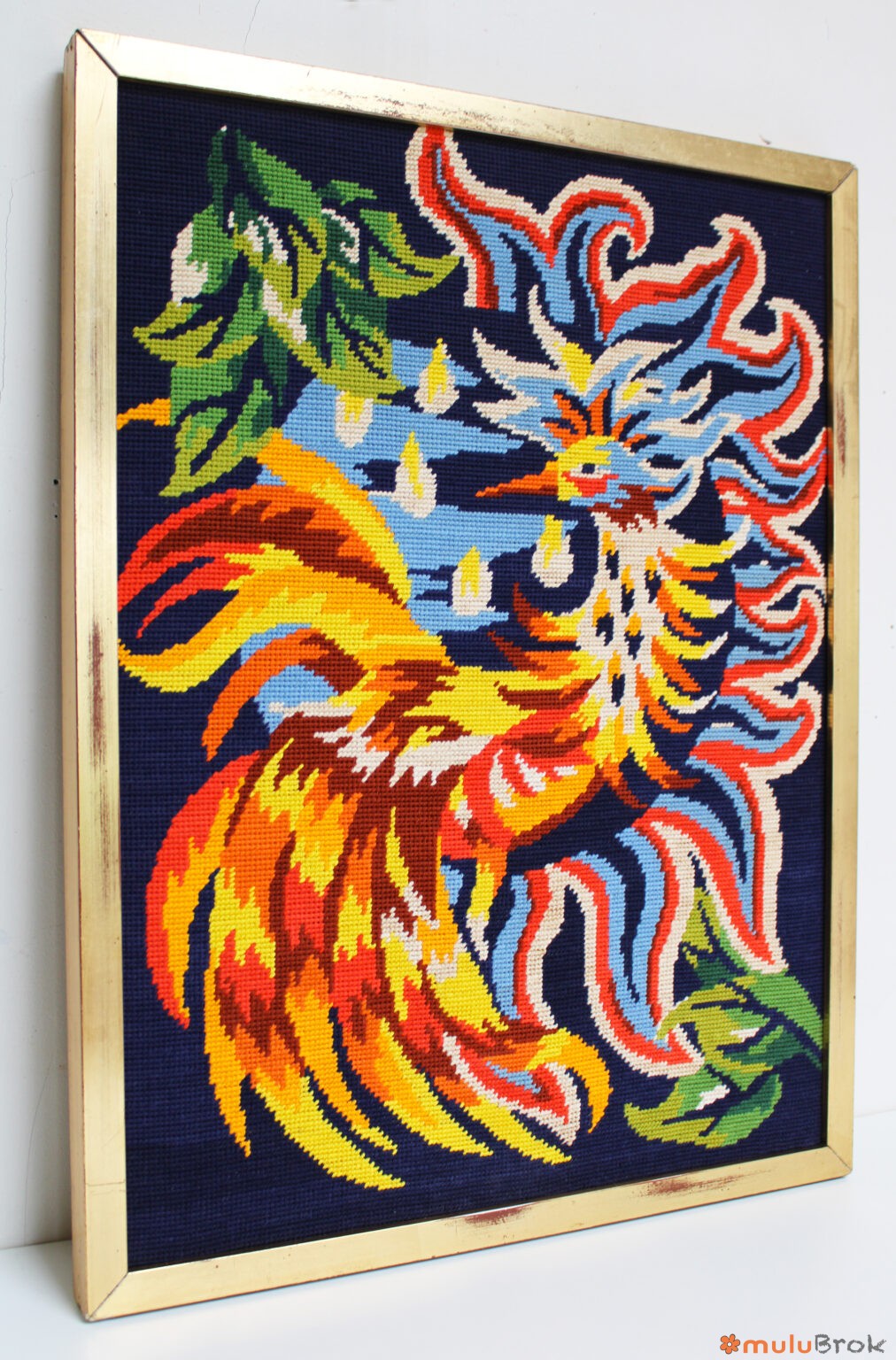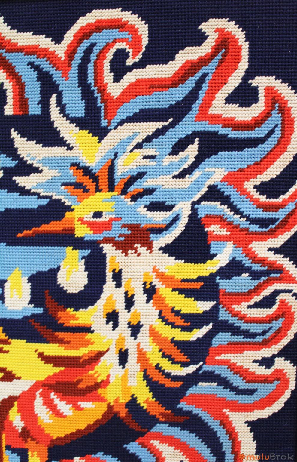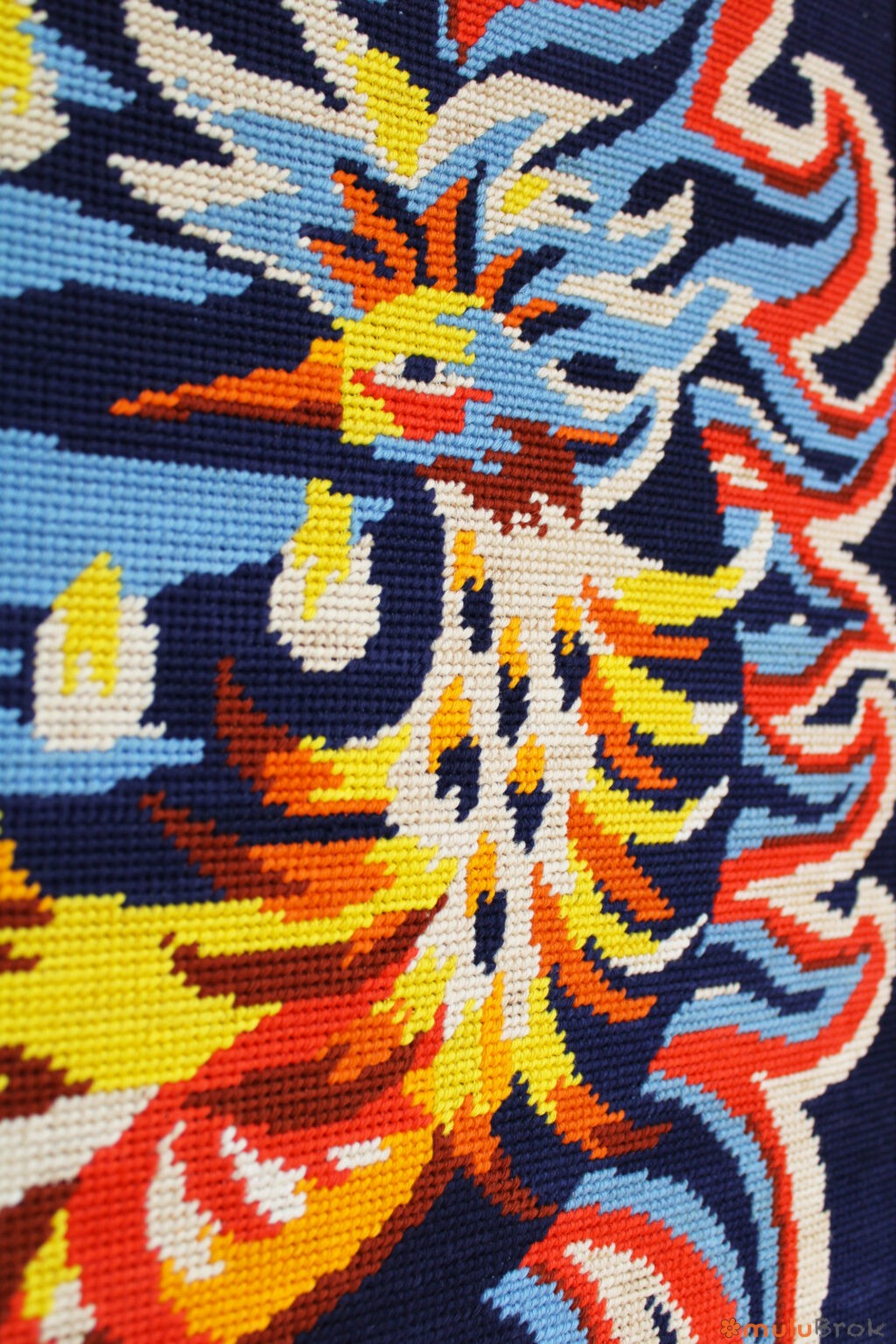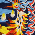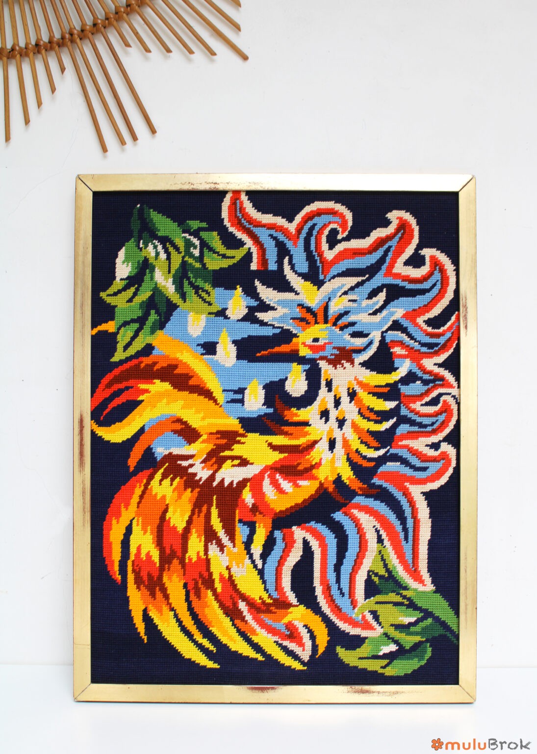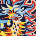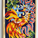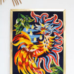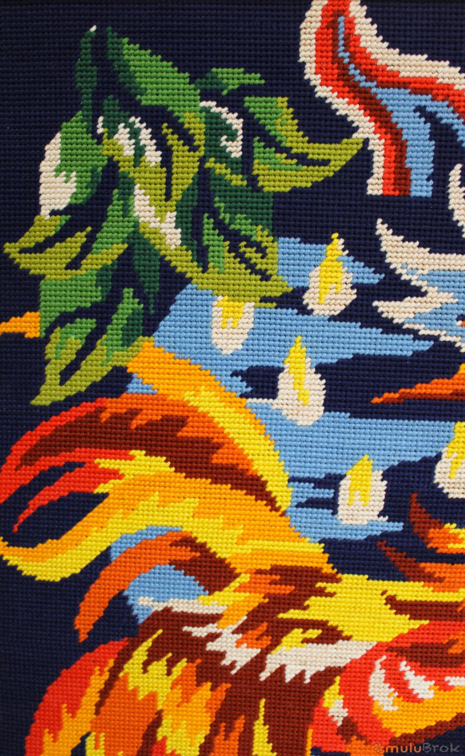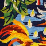 Couleurs vives et chatoyantes sur fond bleu marine.