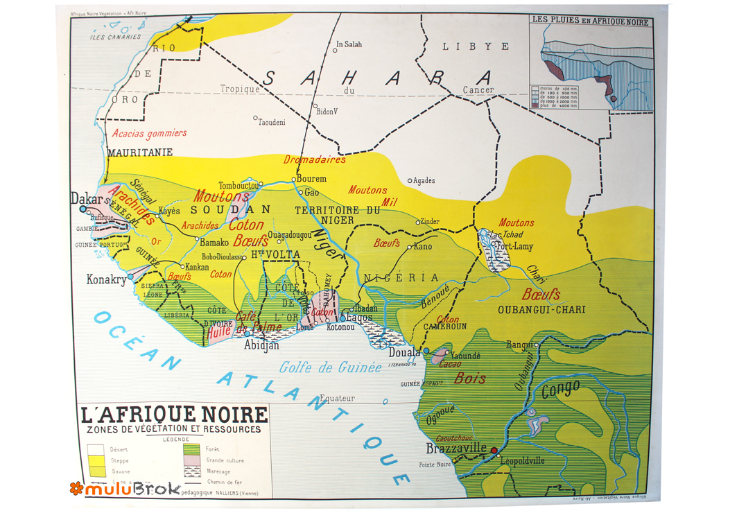 RECTO : L’Afrique Noire. Zones de végétation et ressources.