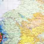 Carte géographique murale plastifiée.