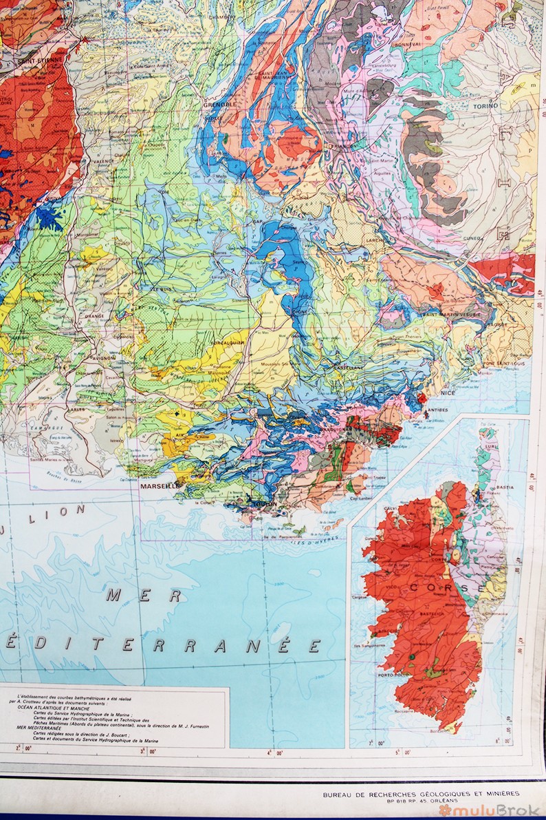 Ancienne carte géologique de la France.