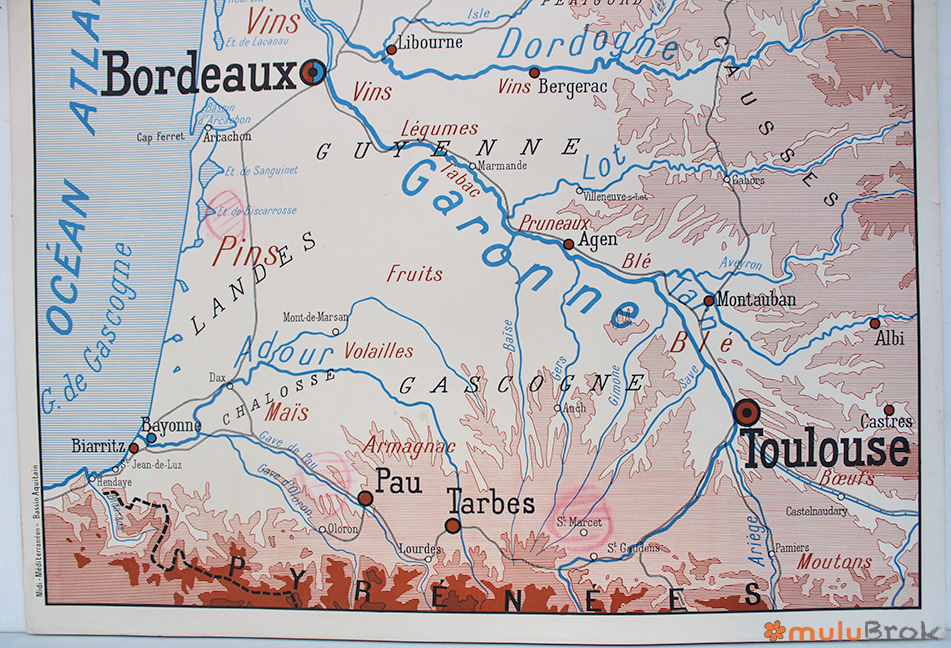 Affiche carte Bassin aquitain et Midi méditerranéen