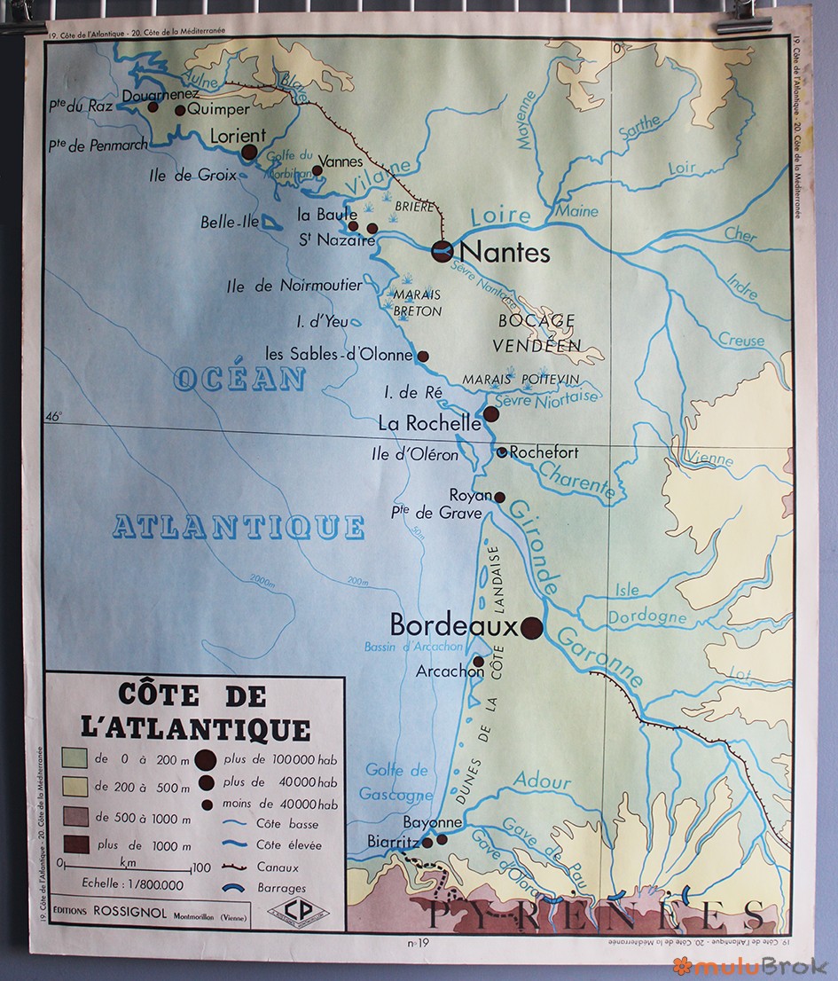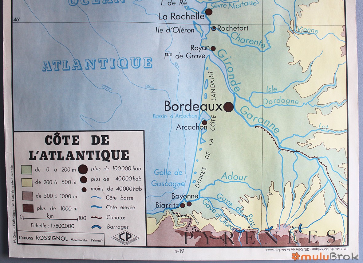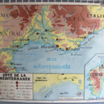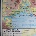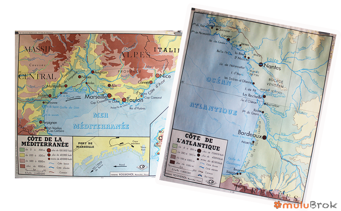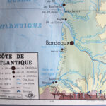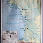 Carte géographique Côte Atlantique et côte de la Méditerranée.