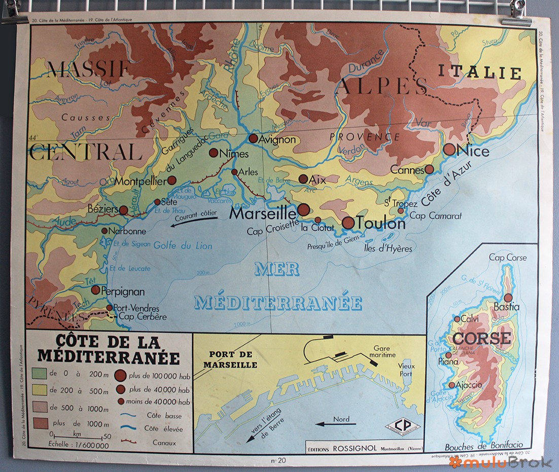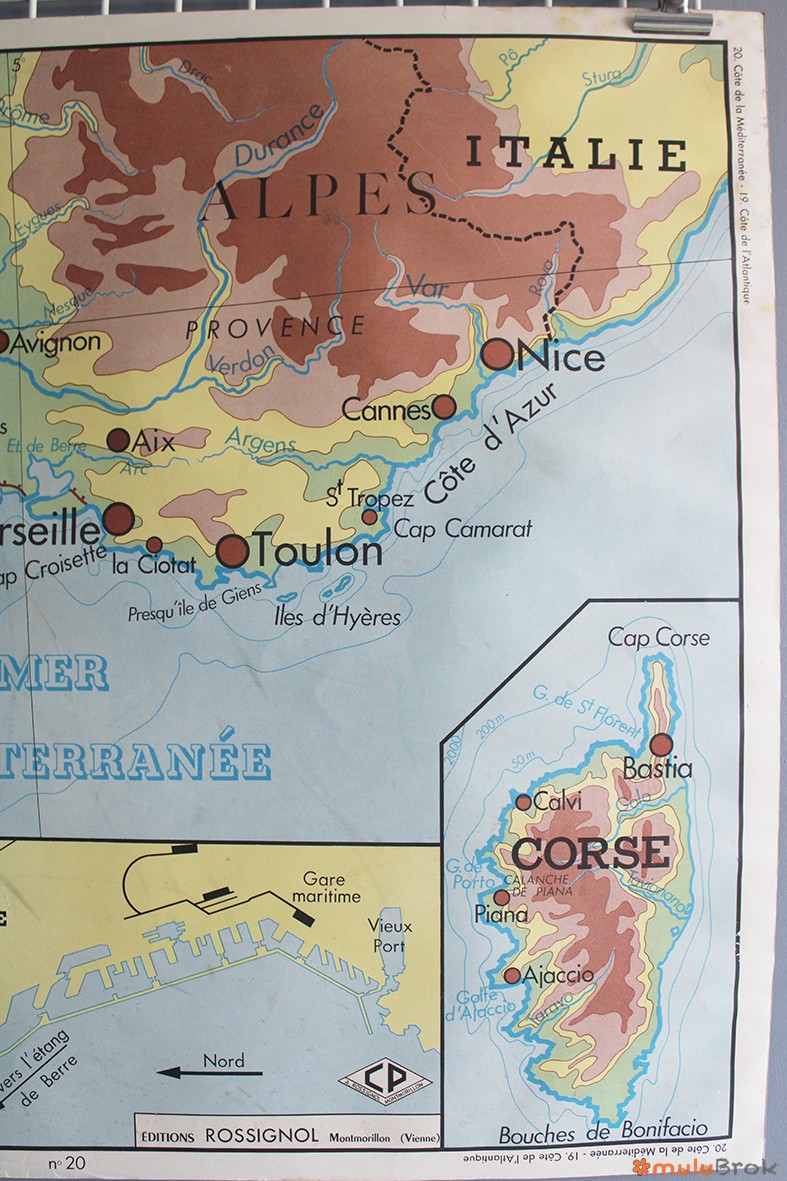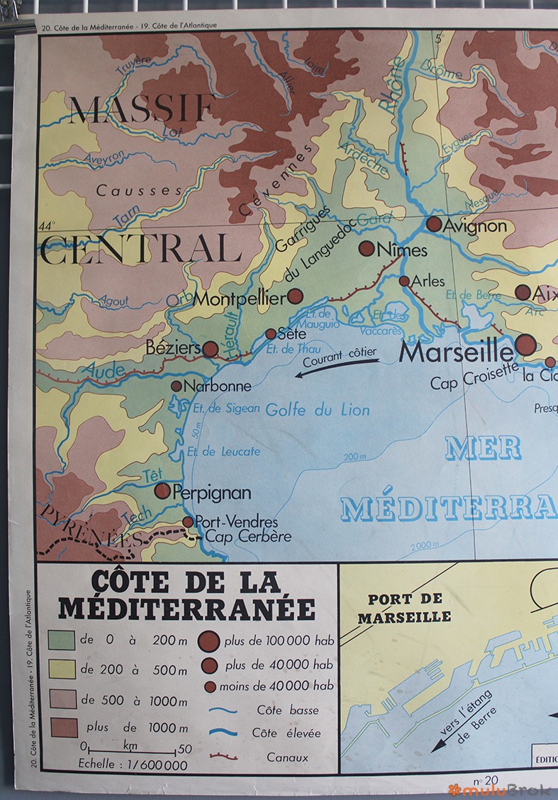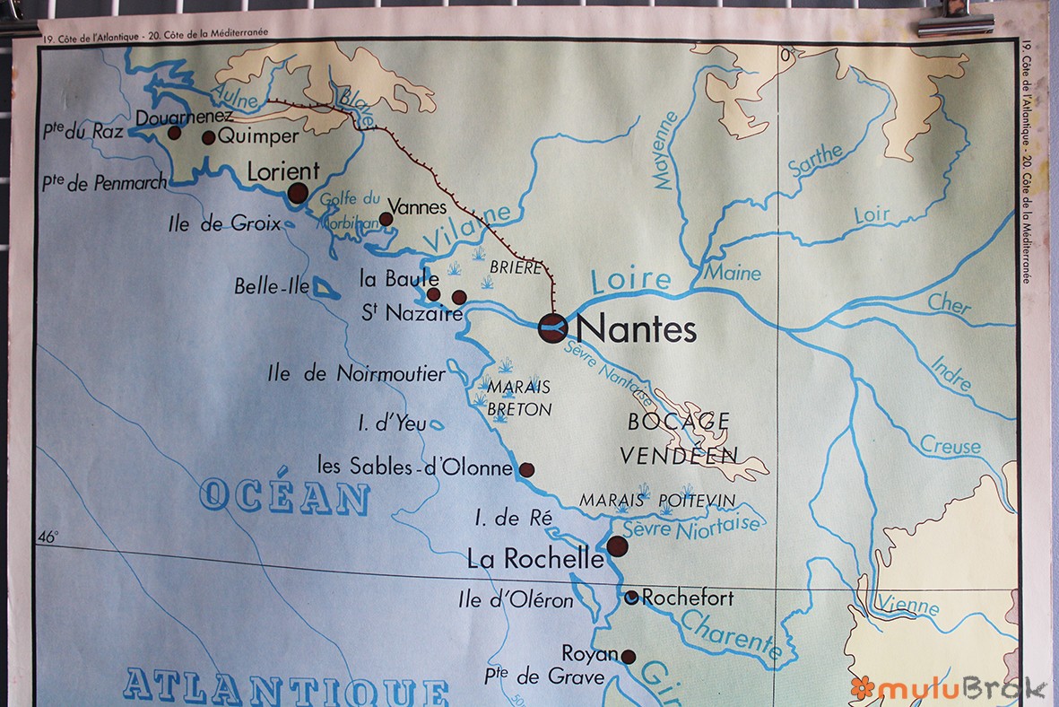 Carte géographique Côte Atlantique et côte de la Méditerranée.