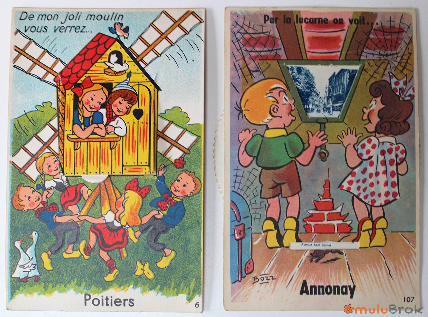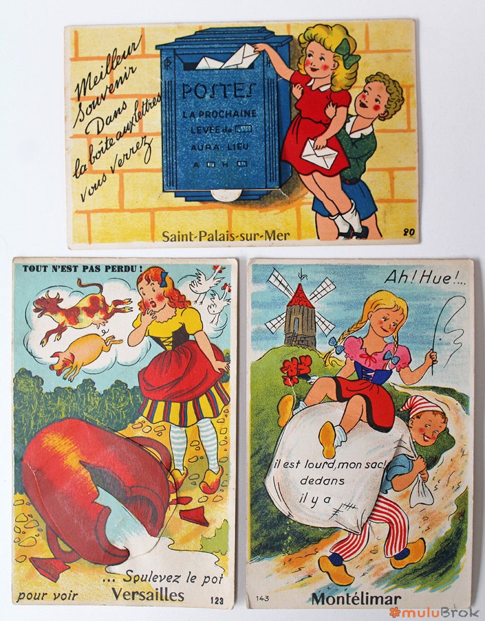 Anciennes cartes postales à système.