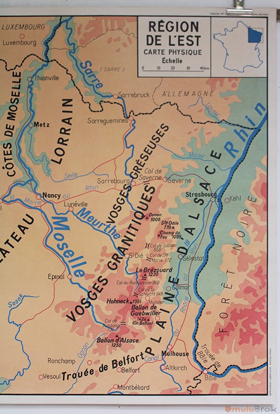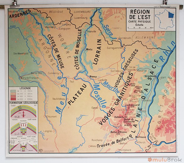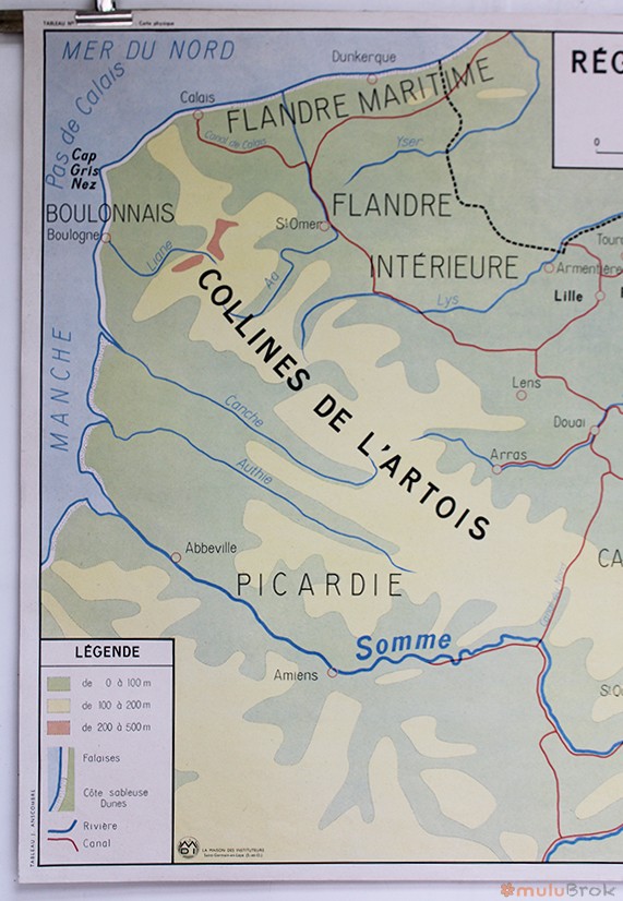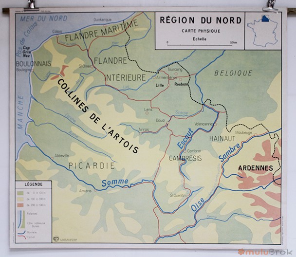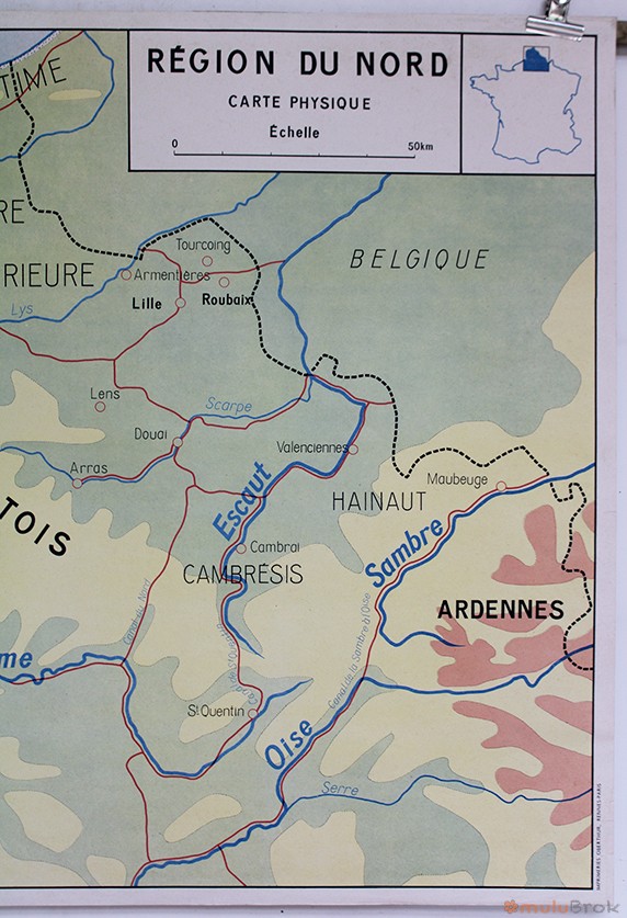 Ancienne carte géographique Régions du Nord et de l’Est de la France.