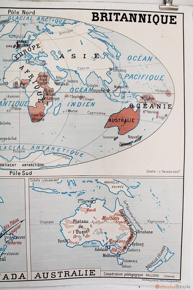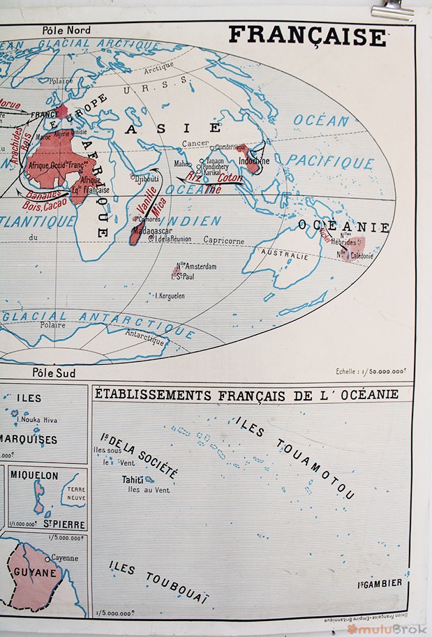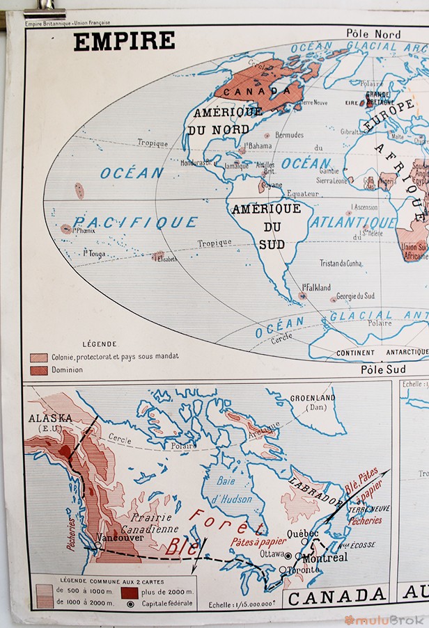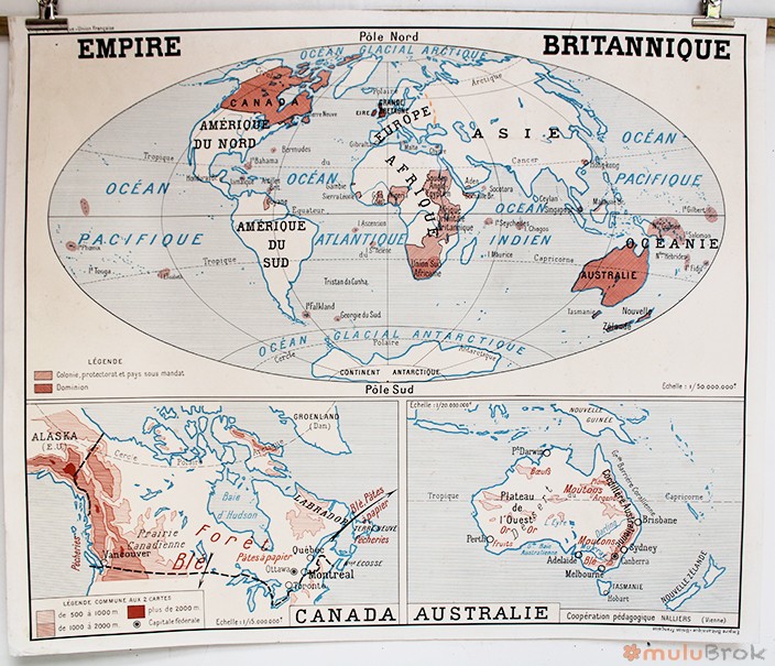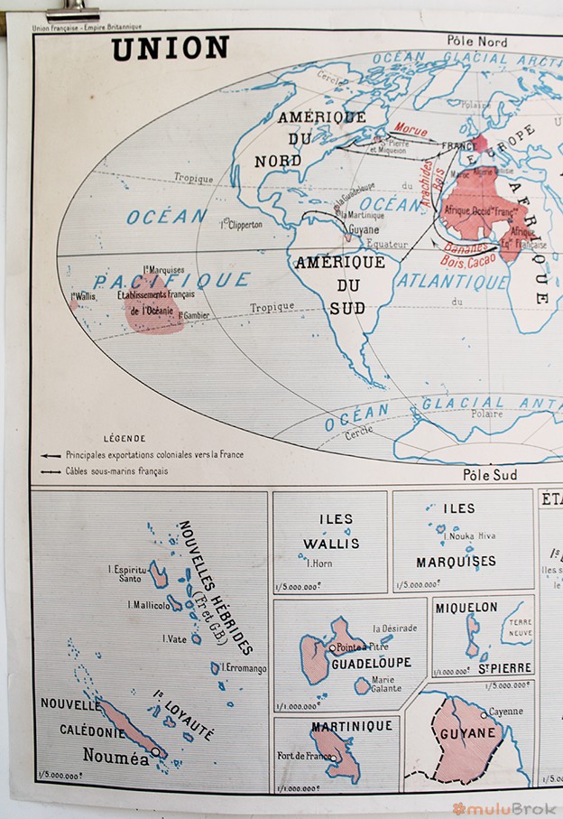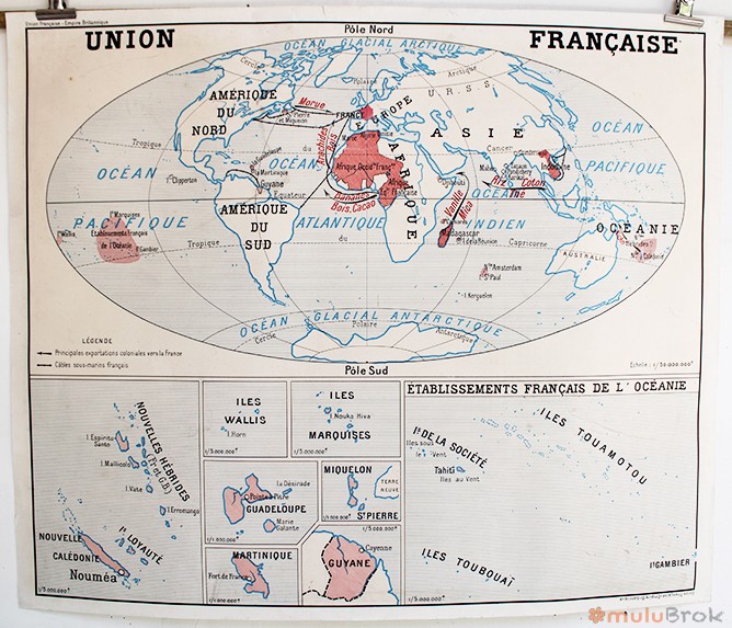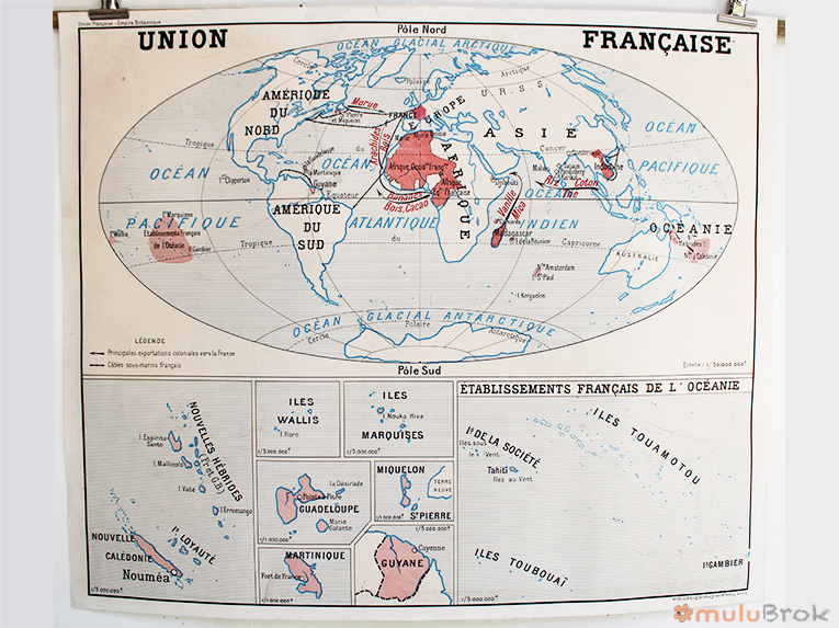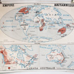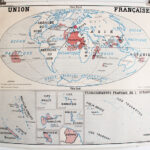 Ancienne carte géographique représentant l’Union Française et l’Empire Britannique.