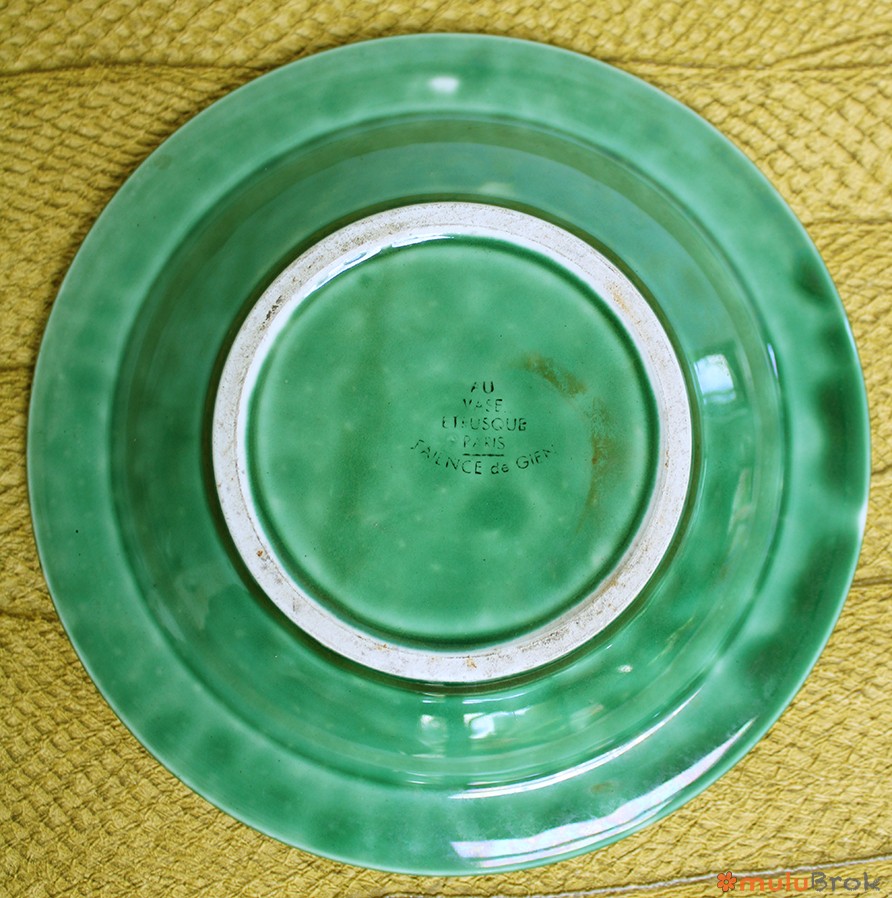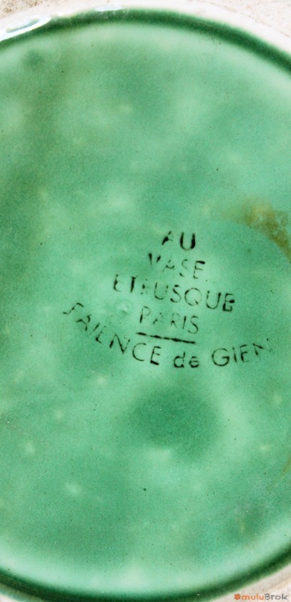 Signé au dos : Au vase étrusque . Faïence de Gien