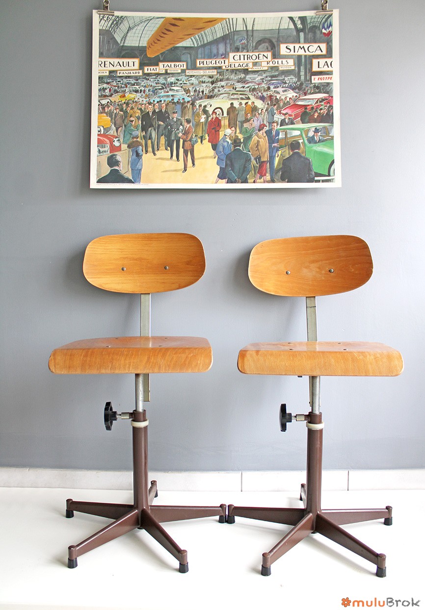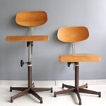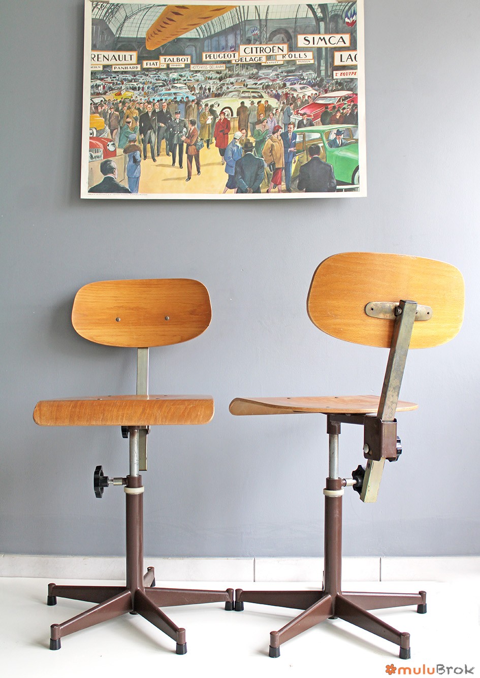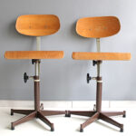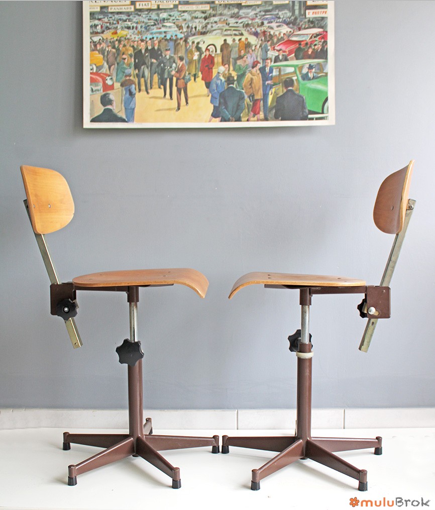 Ancienne chaise d’atelier tournante avec dossier inclinable.