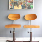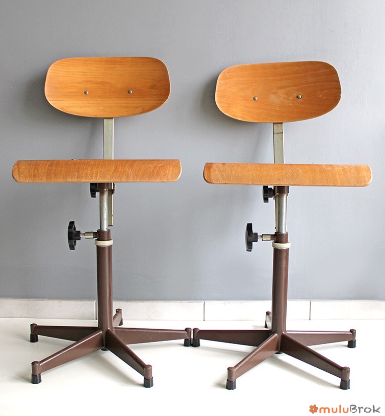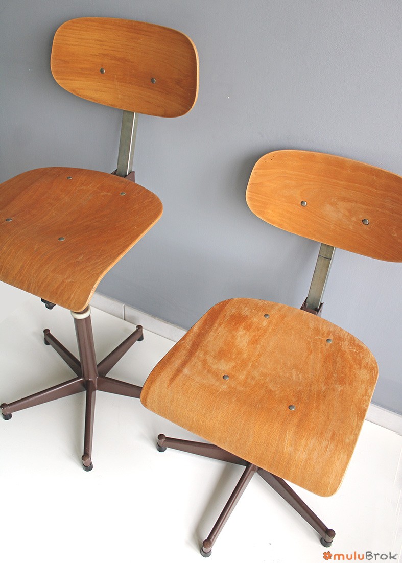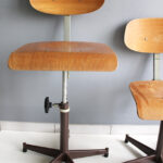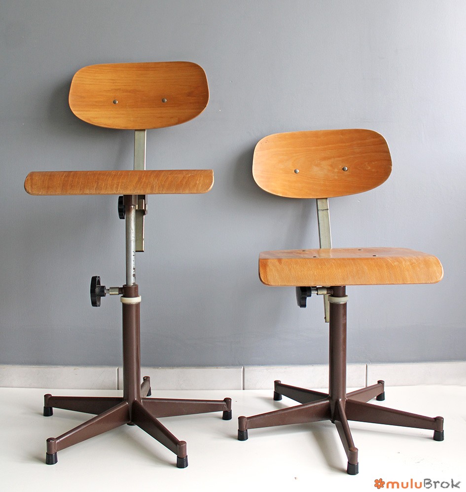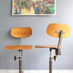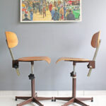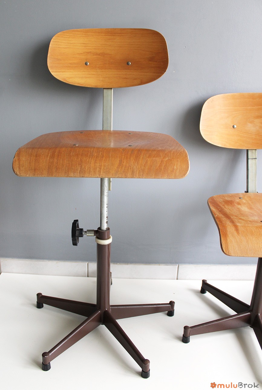 Ancienne chaise d’atelier tournante avec dossier inclinable.