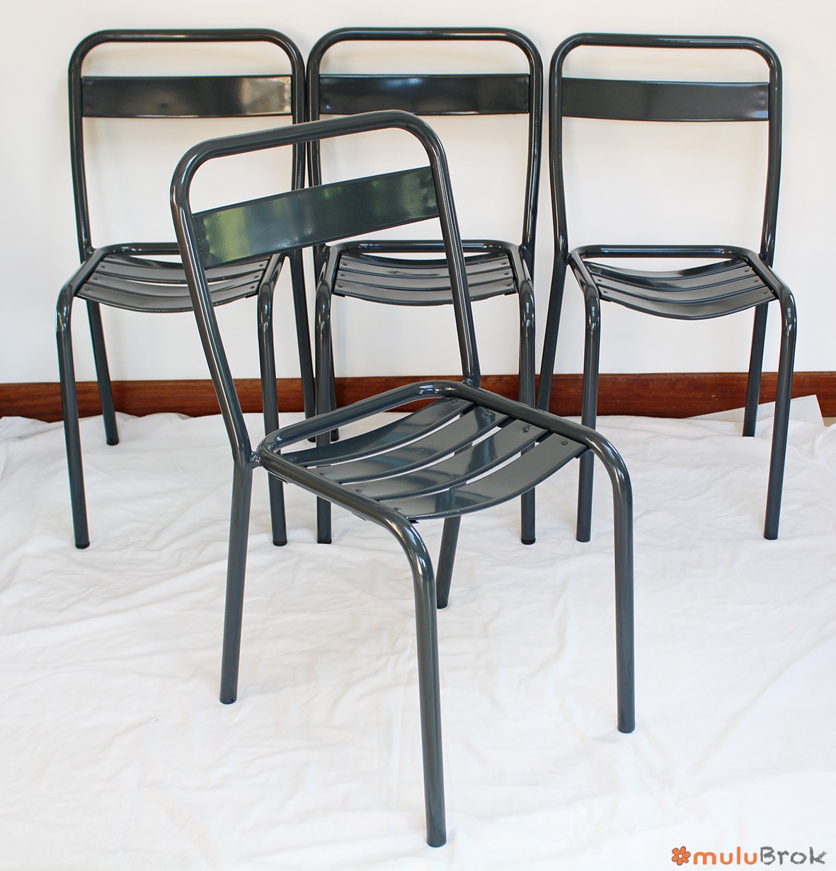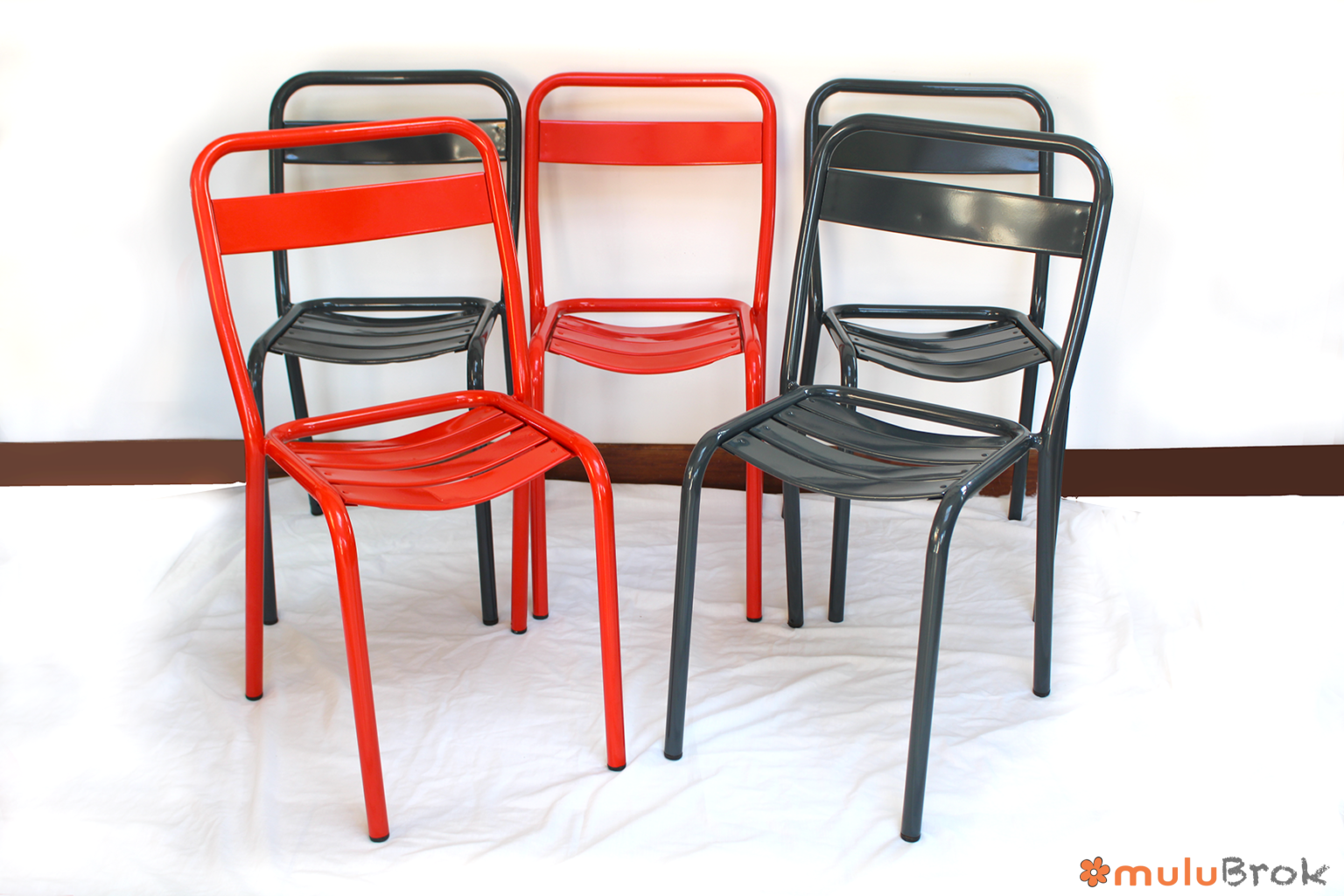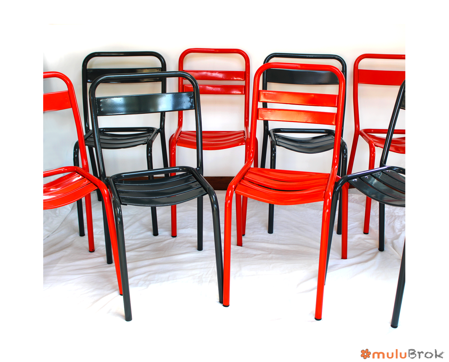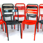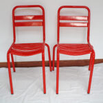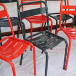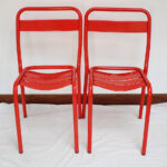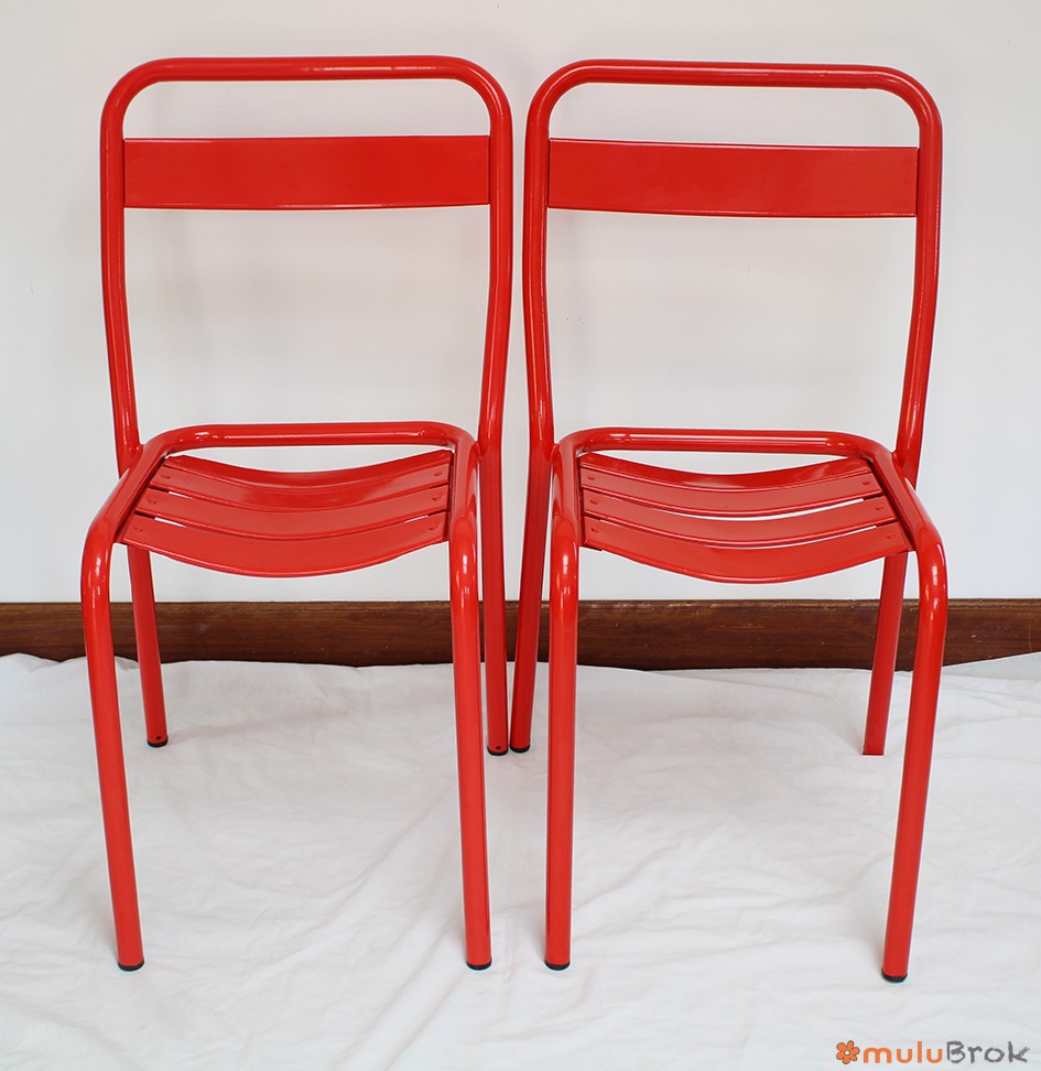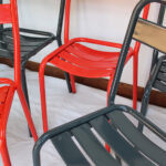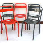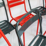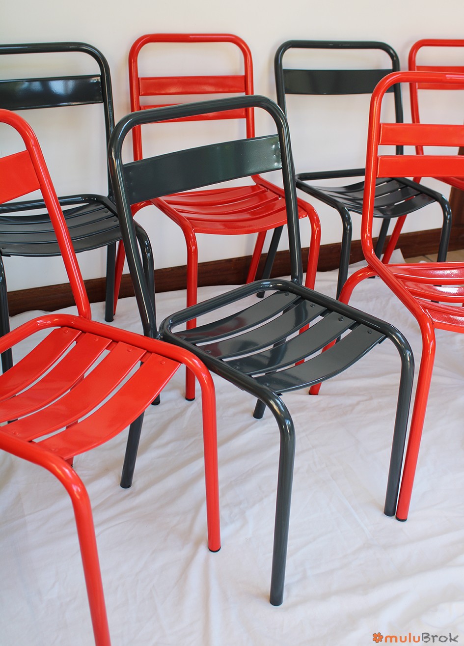 Métal, chaises empilables.