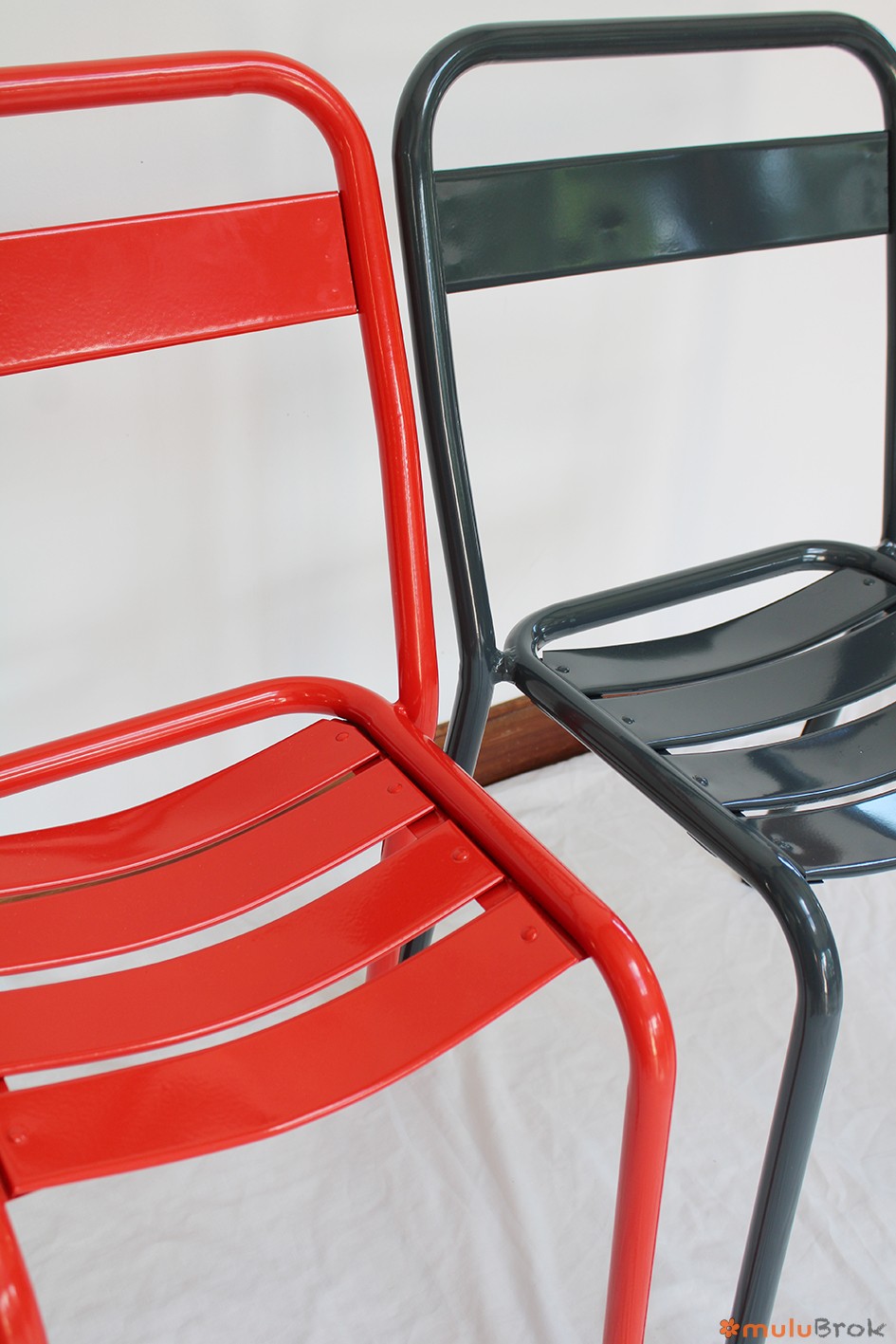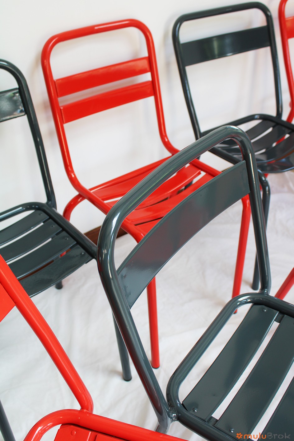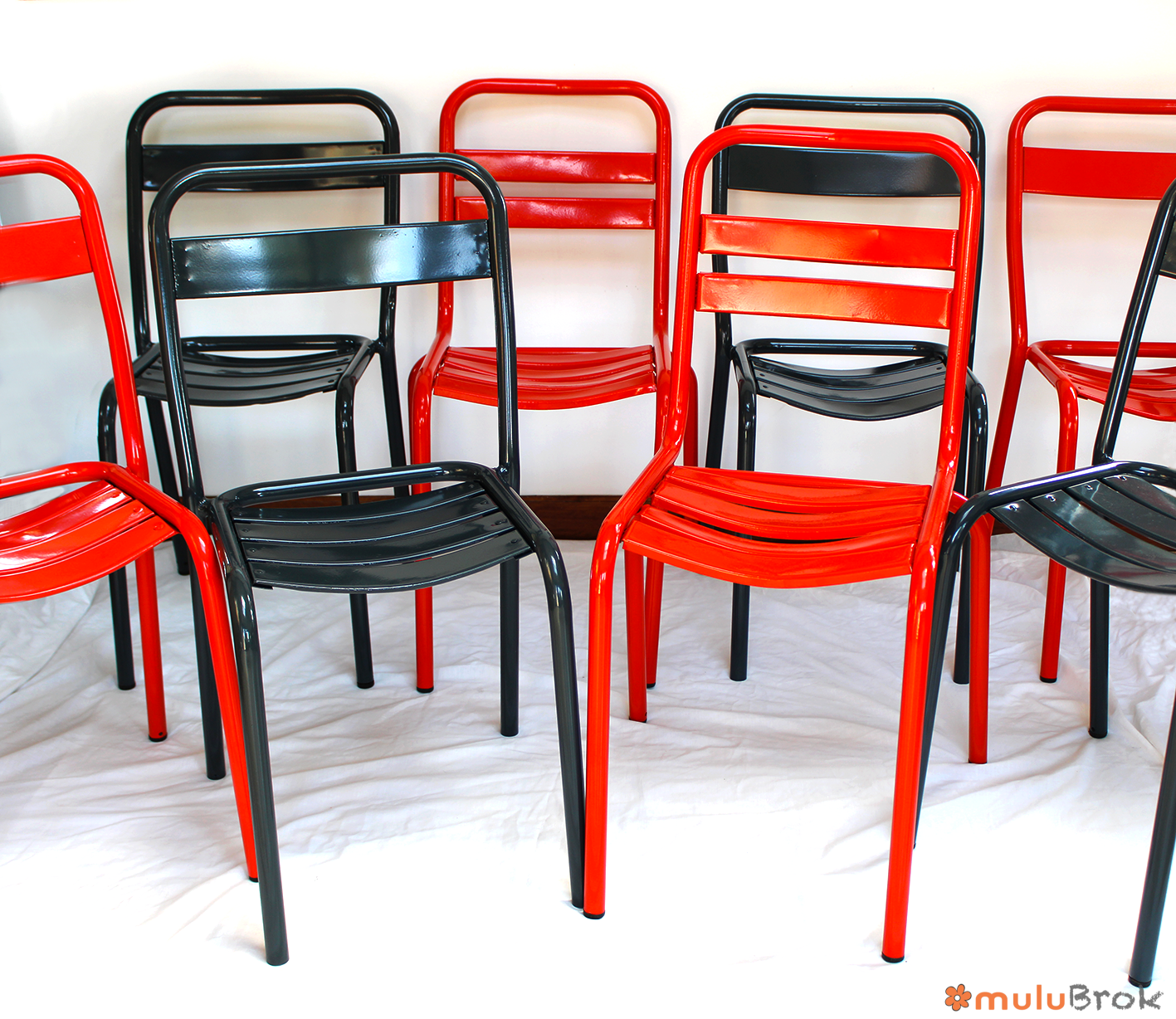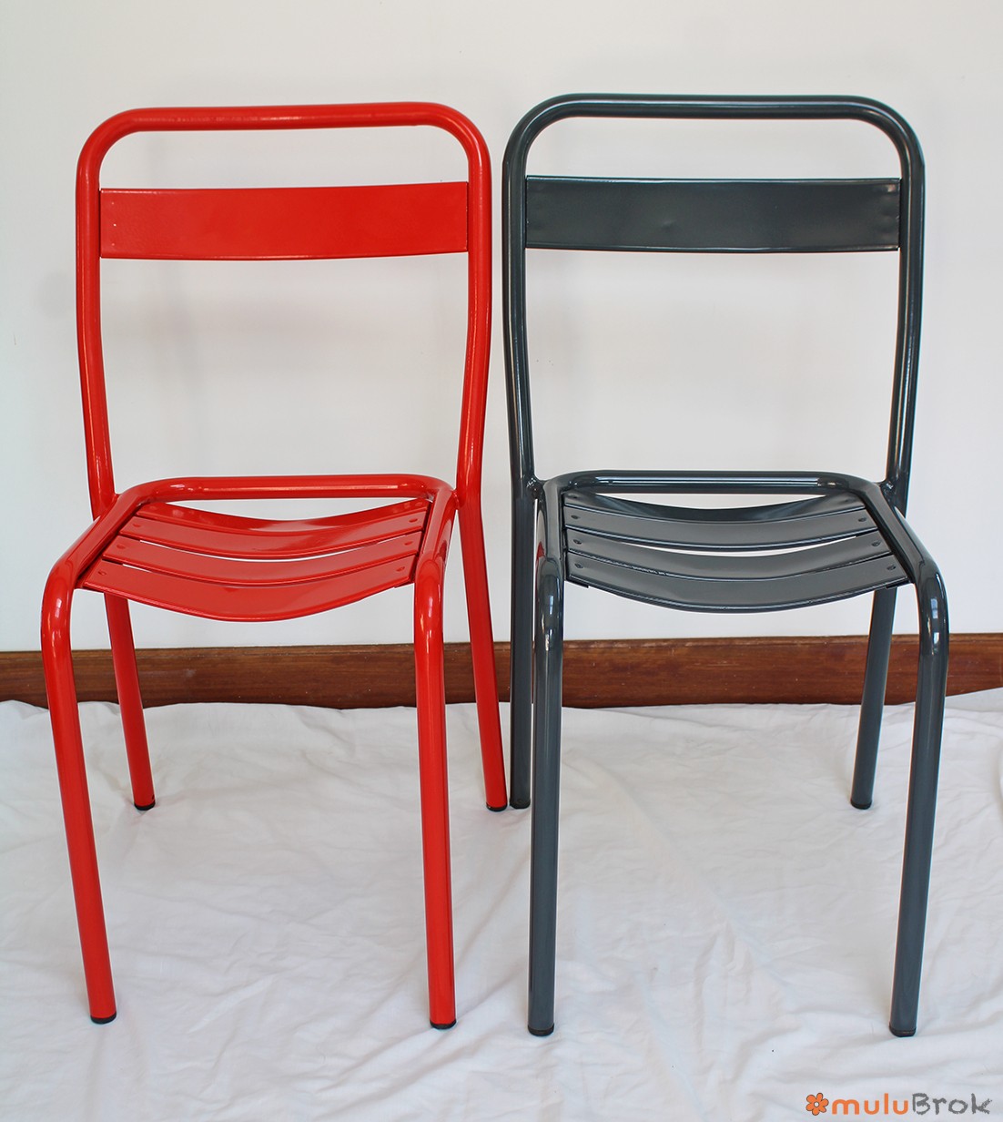 Métal, chaises empilables.