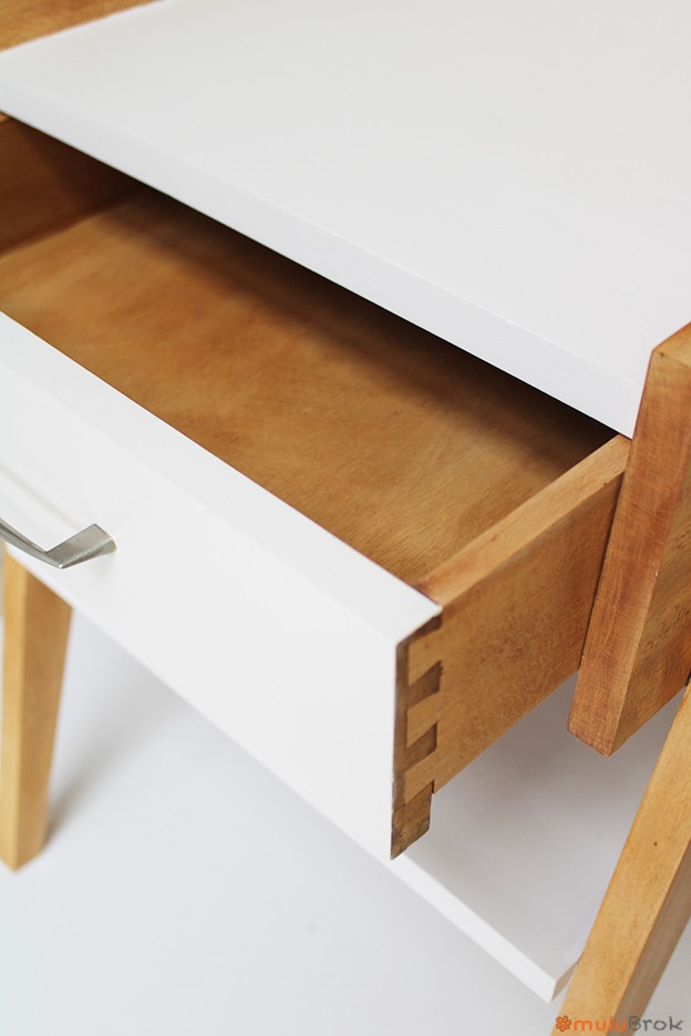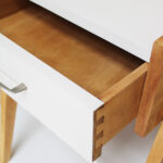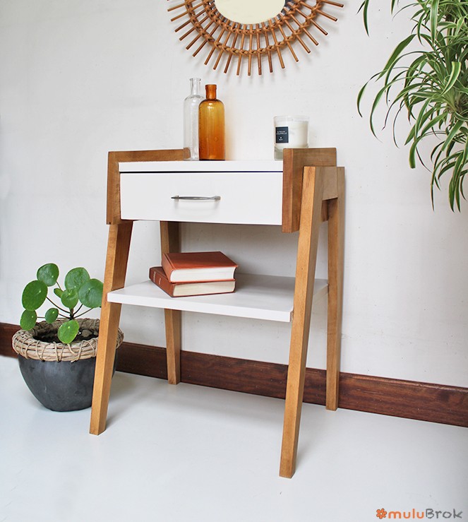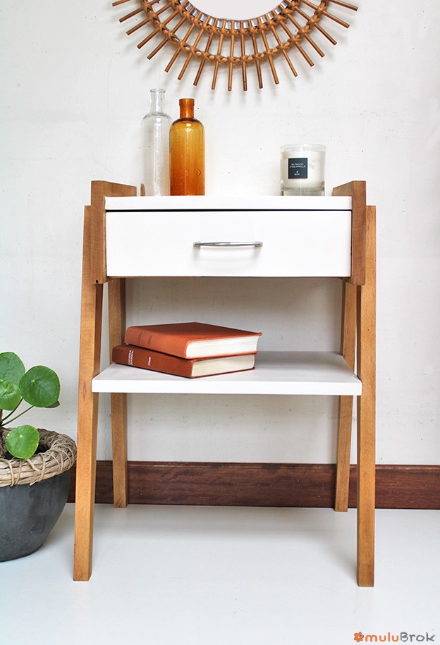 Rénové et revisité en Blanc Plume.  Finition patinée . Teinte bois  (Produits Libéron).