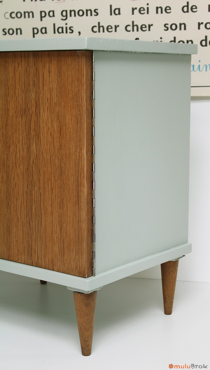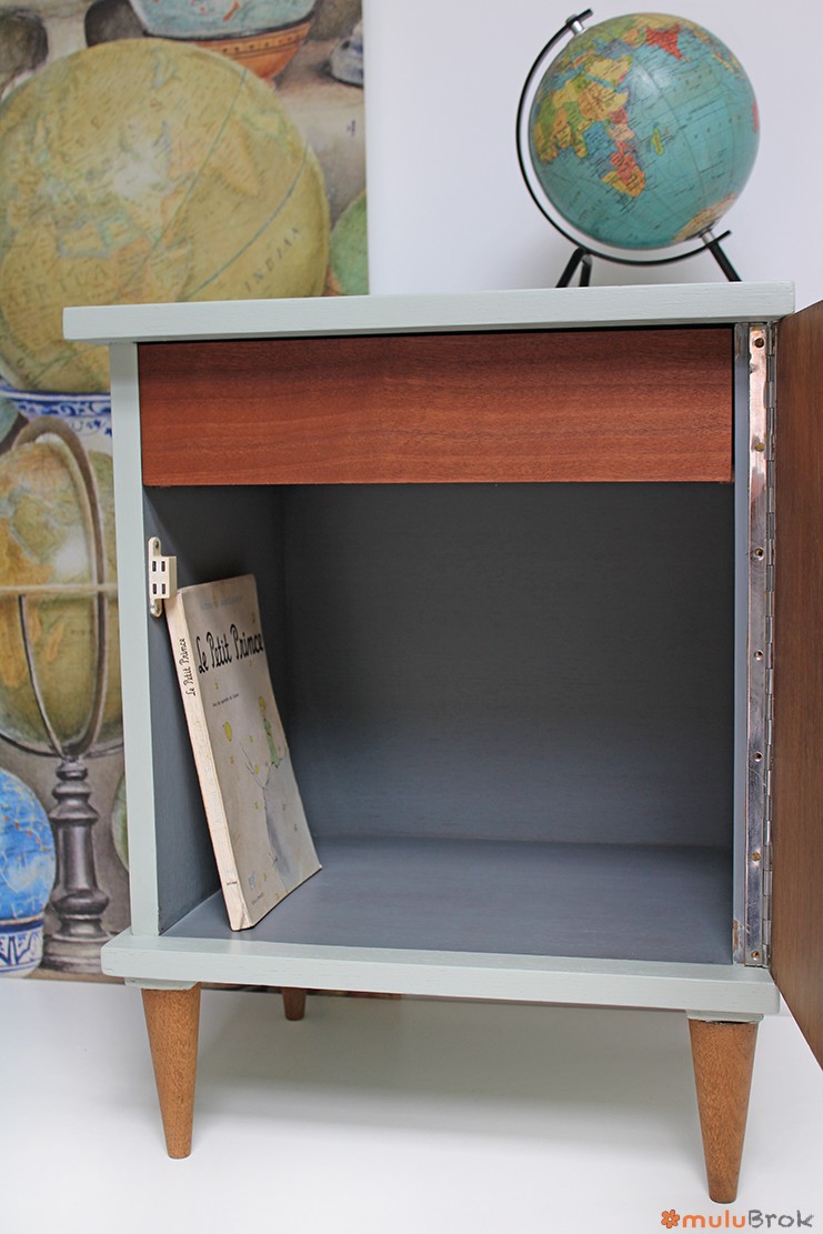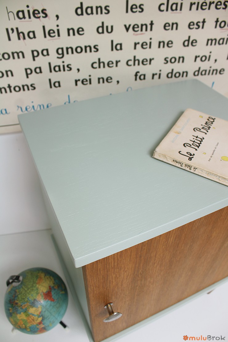 Rénové et revisité : teinte Vert des halles, l’intérieur Gris gustavien, finition patinée (Produits Libéron).