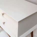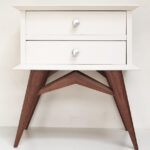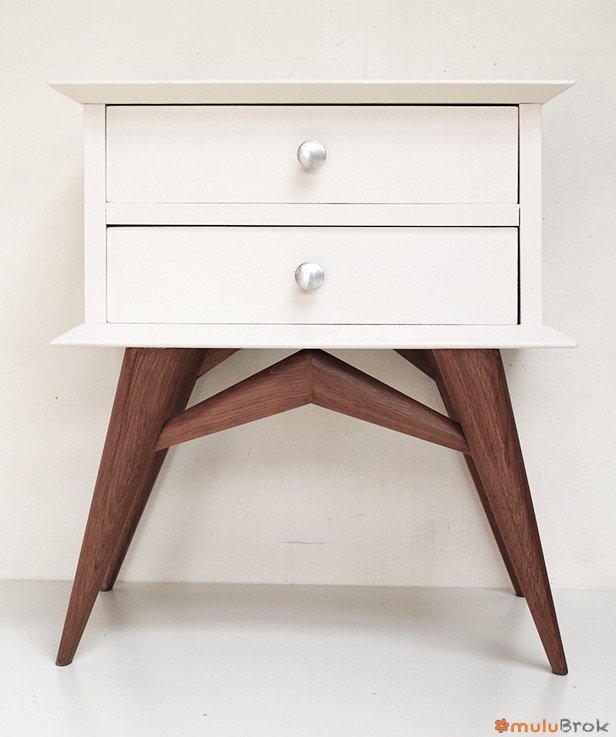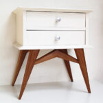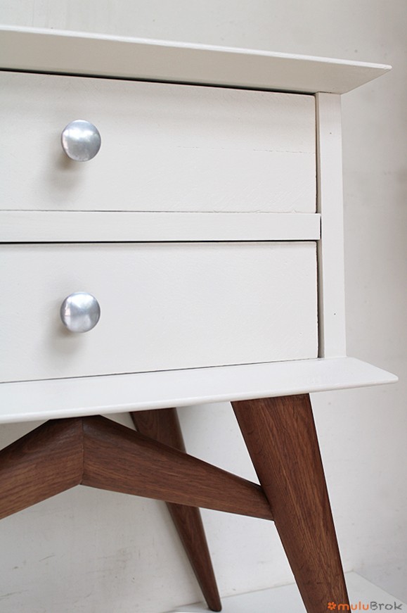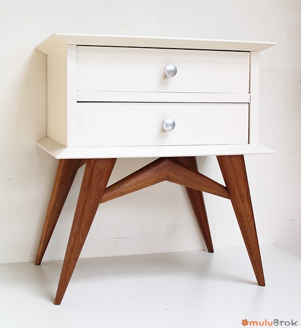 Chevet vintage 2 tiroirs aux pieds compas.