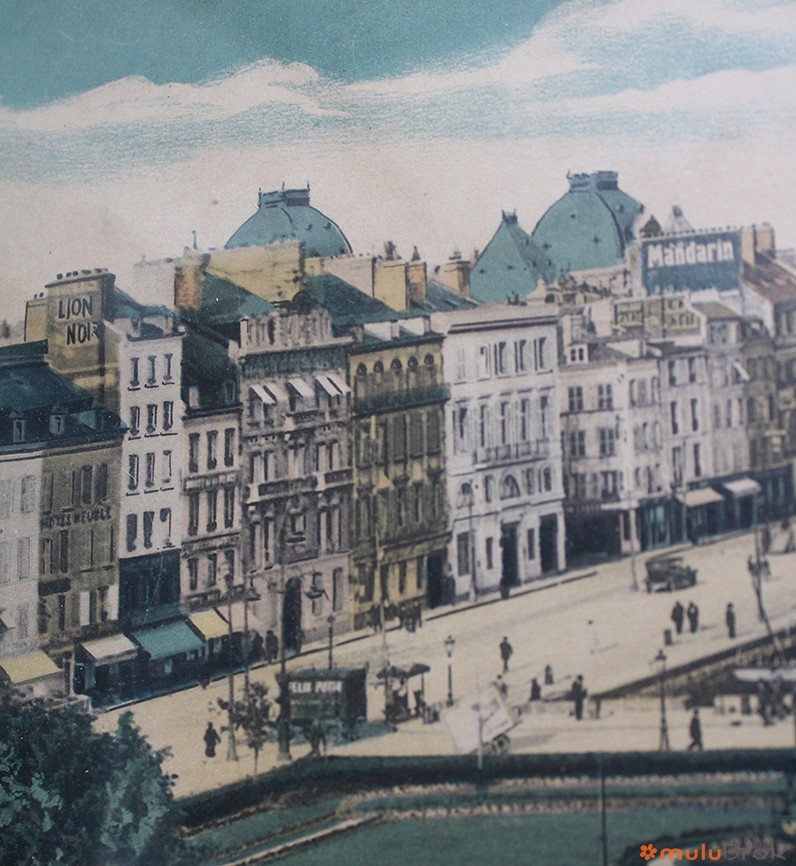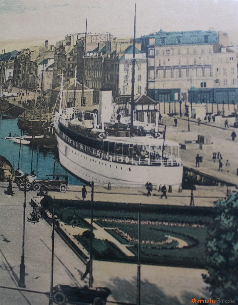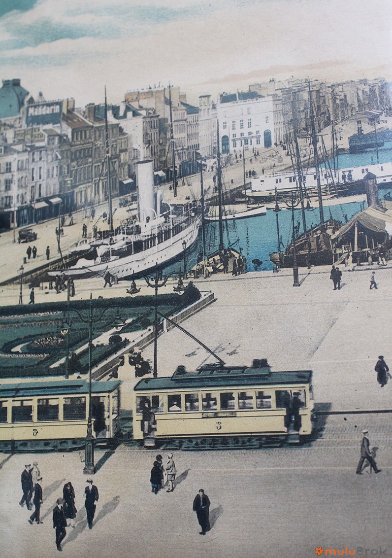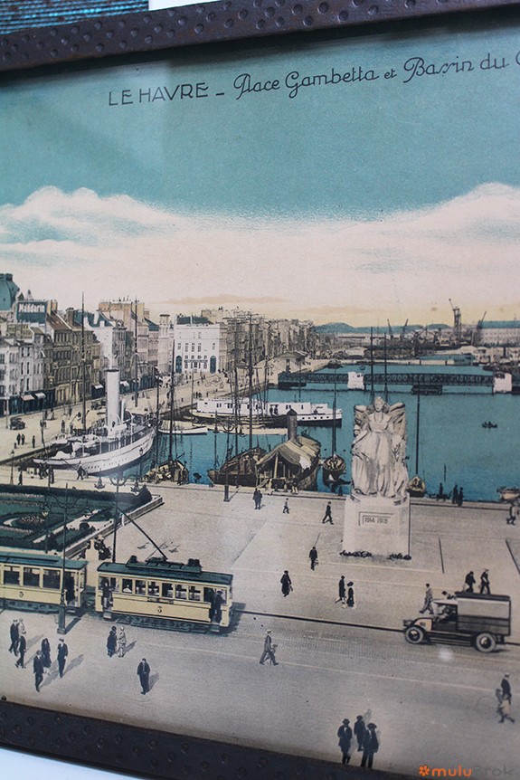 Ancienne chromolithographie animée du bassin de commerce du Havre.