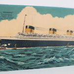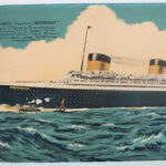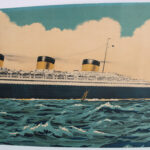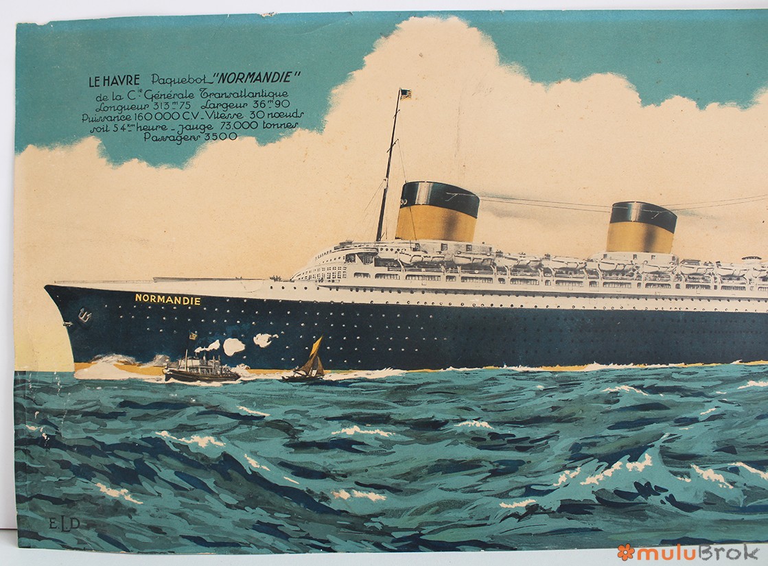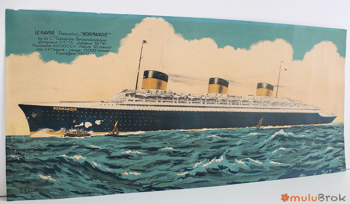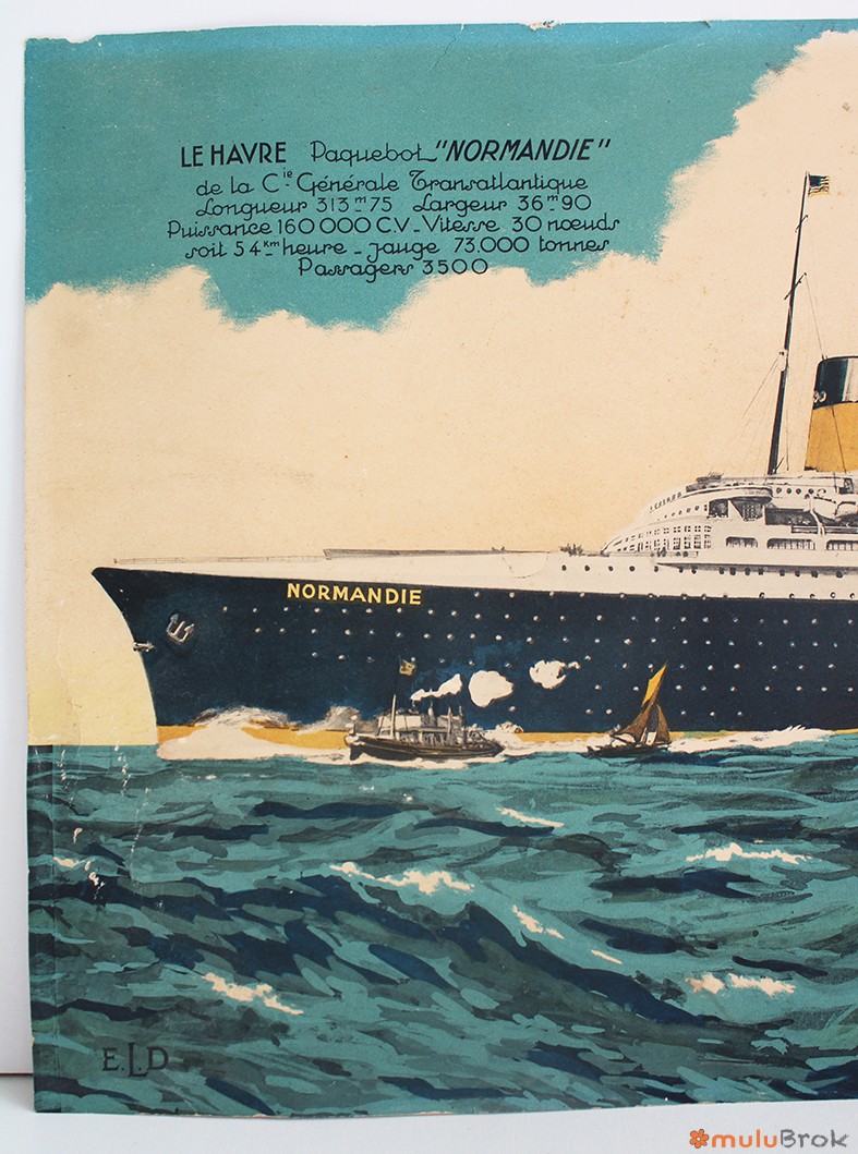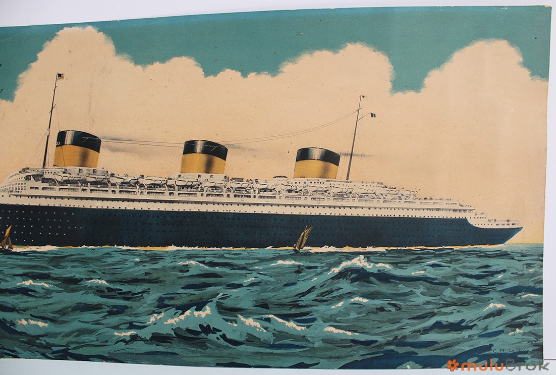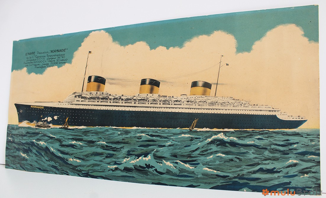 Ancienne chromolithographie représentant le paquebot Normandie.