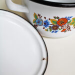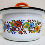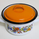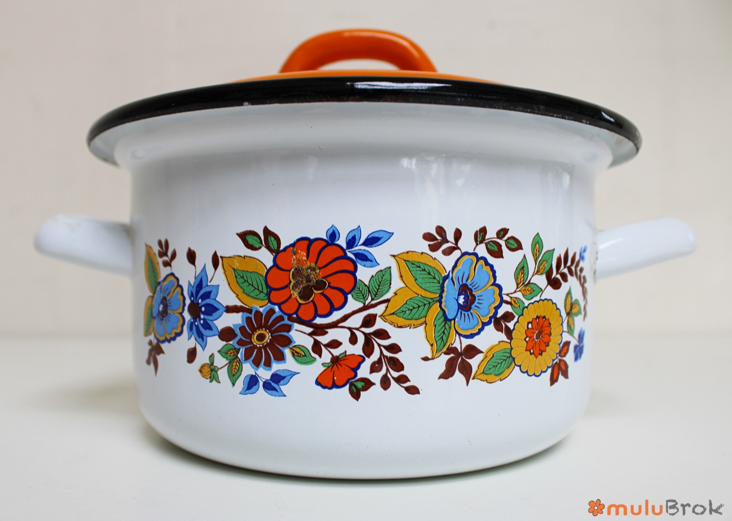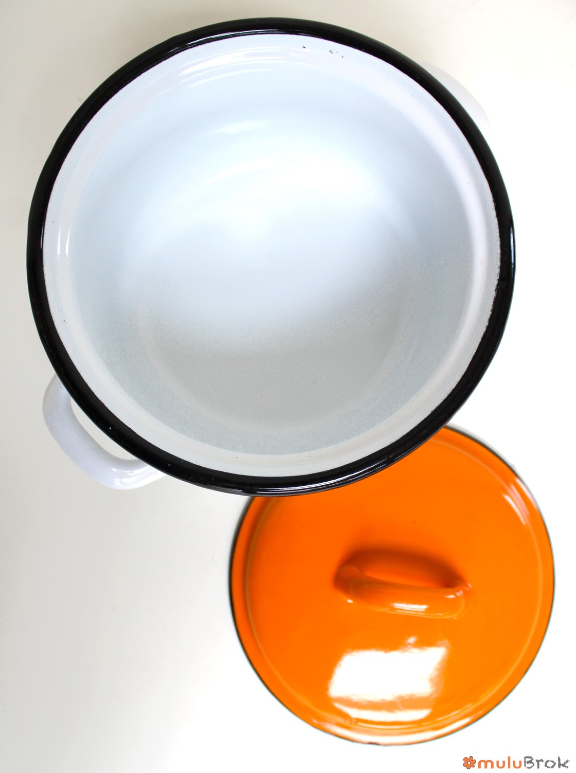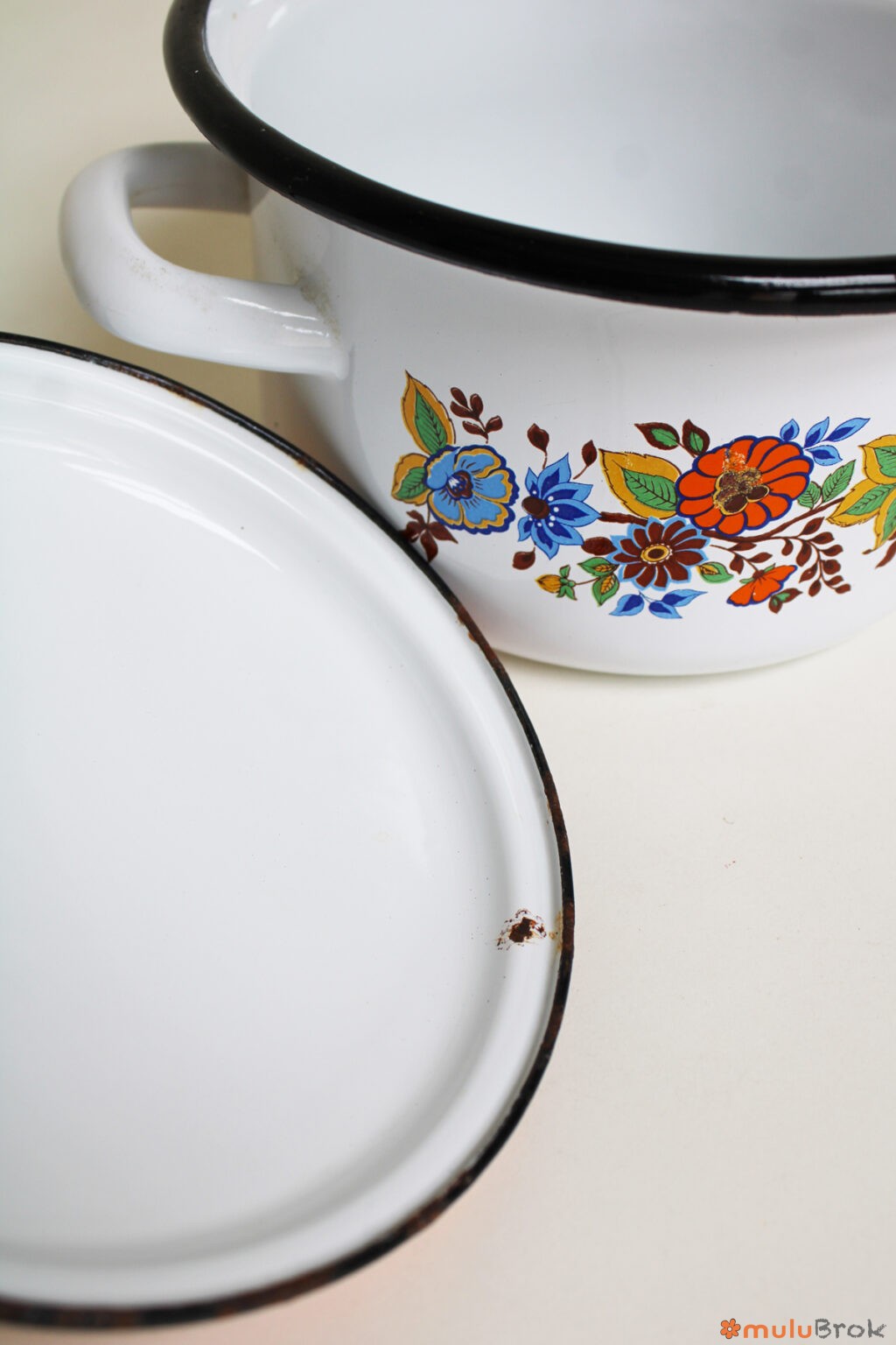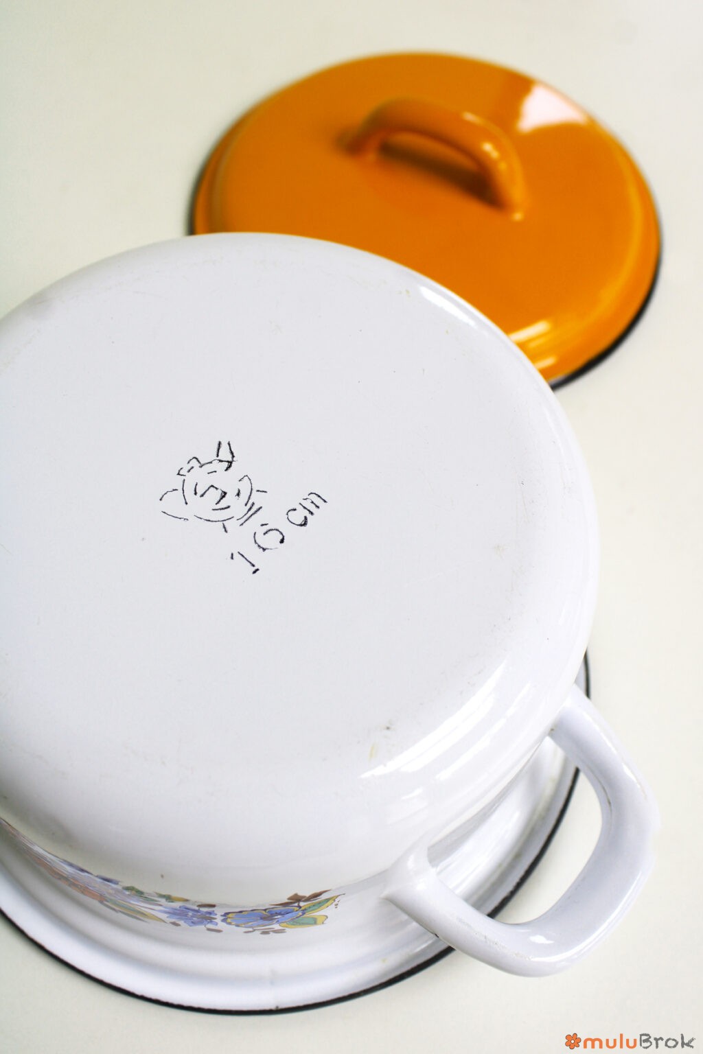 Elle est en bon état : léger saut d’émail sur le bord du couvercle.
