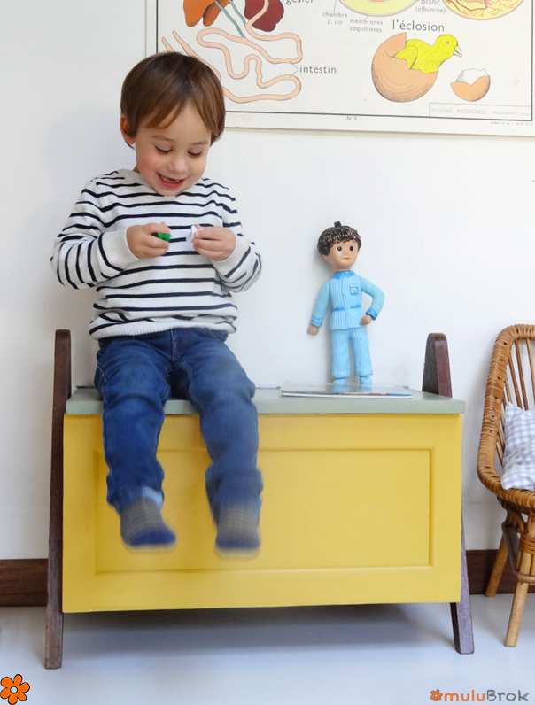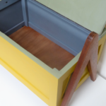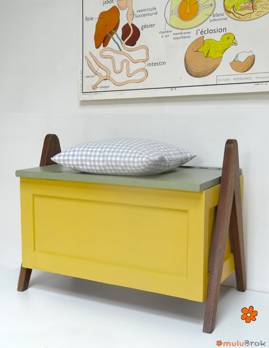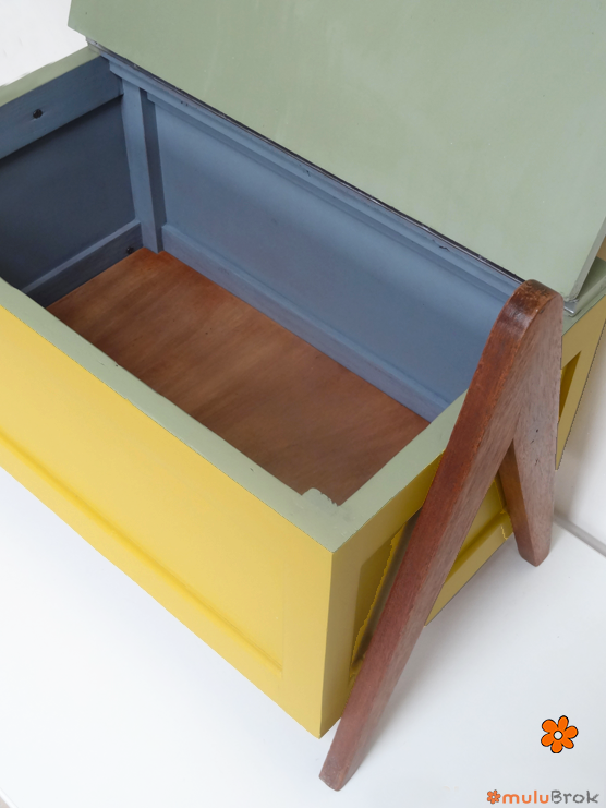 L’extérieur est peint en 2 tons : Epi de blé et Vert de Gris, puis patiné.