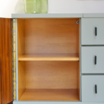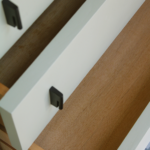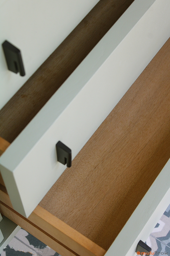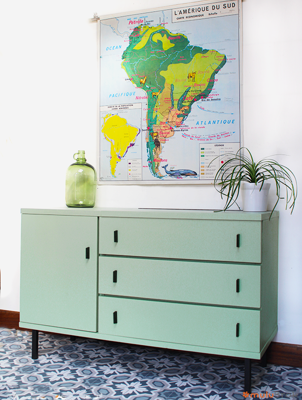 Poignées et pieds en métal noir.