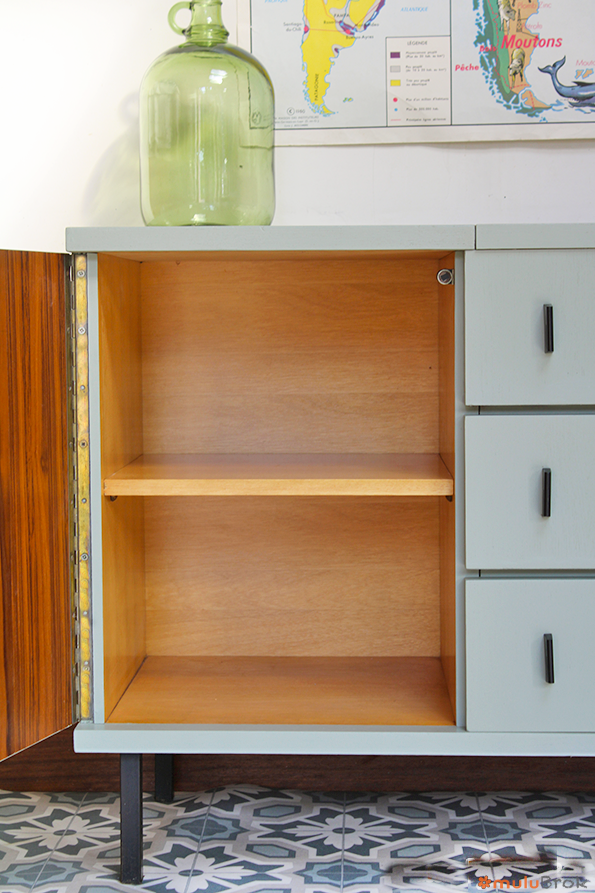 Côté droit : 1 porte avec étagère à l’intérieur.