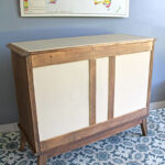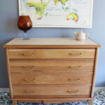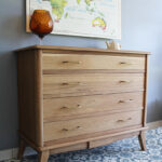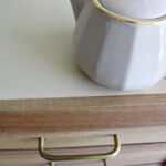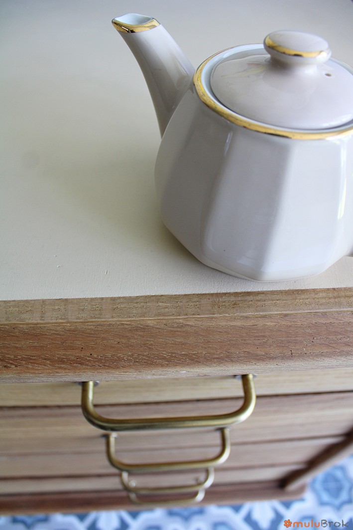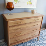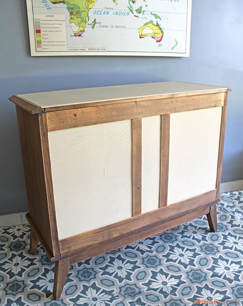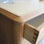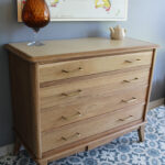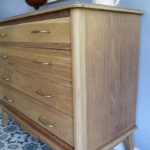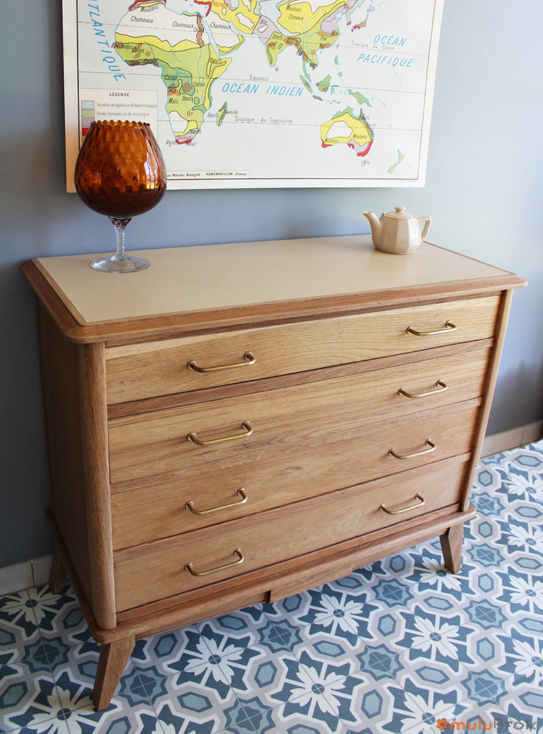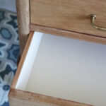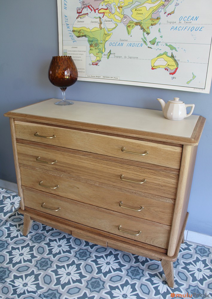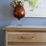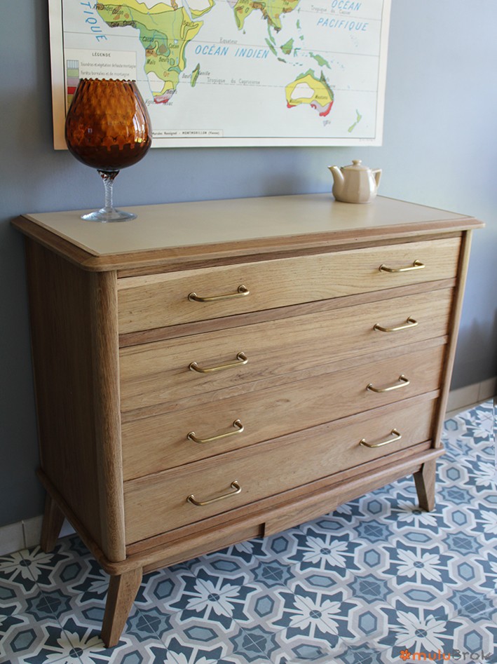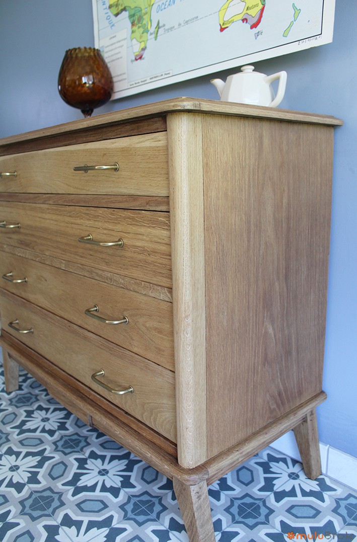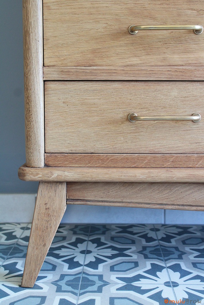 4 tiroirs finition queue d’aronde, avec poignées en laiton.