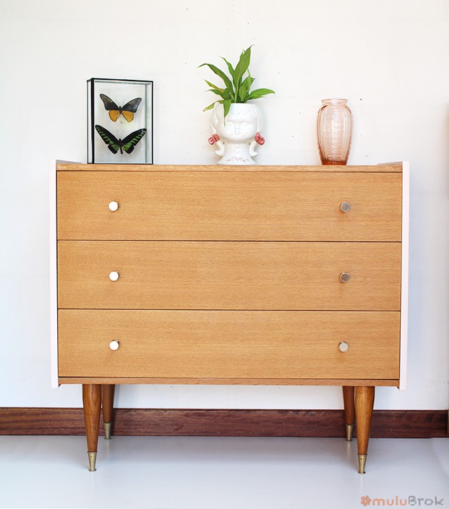 Rénovée et revisitée en Rose Layette sur les côtés. Finition patinée (Produits Libéron).