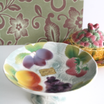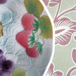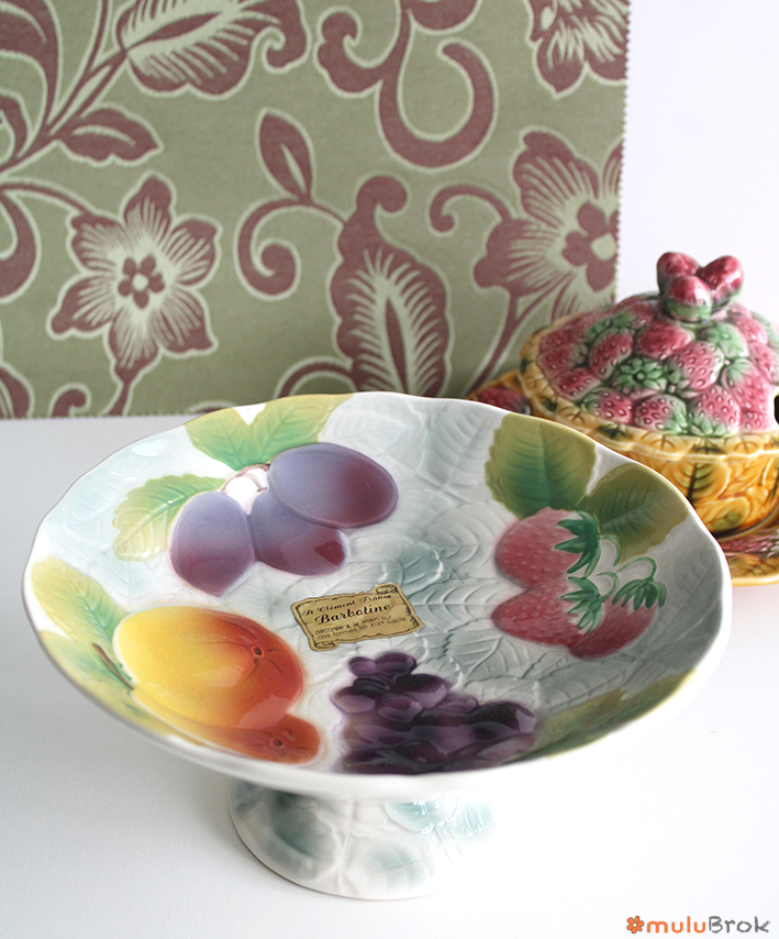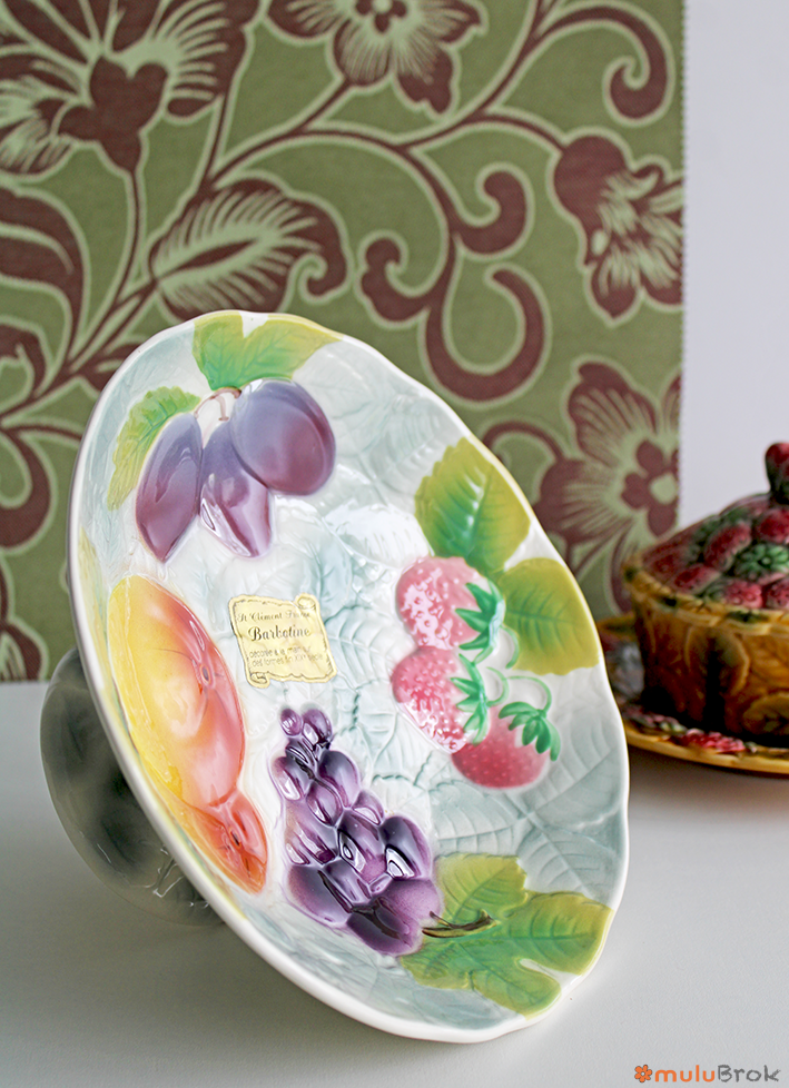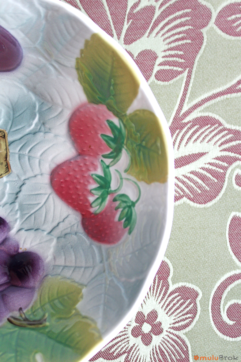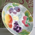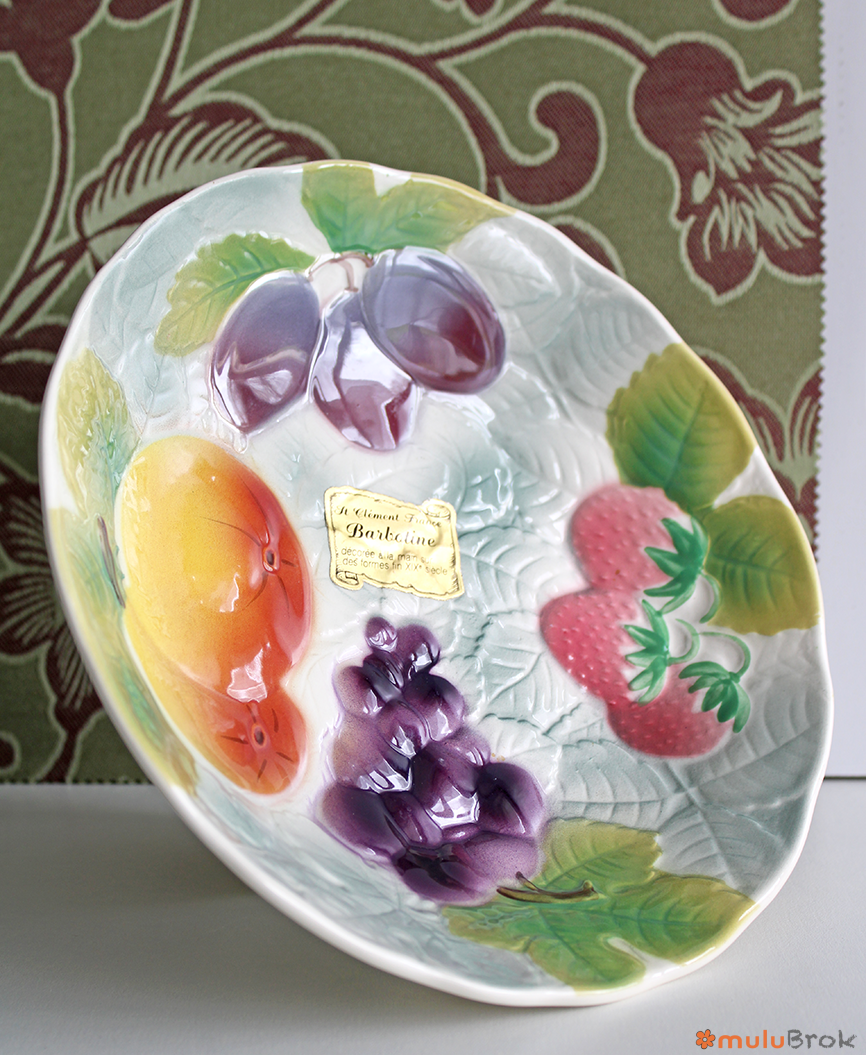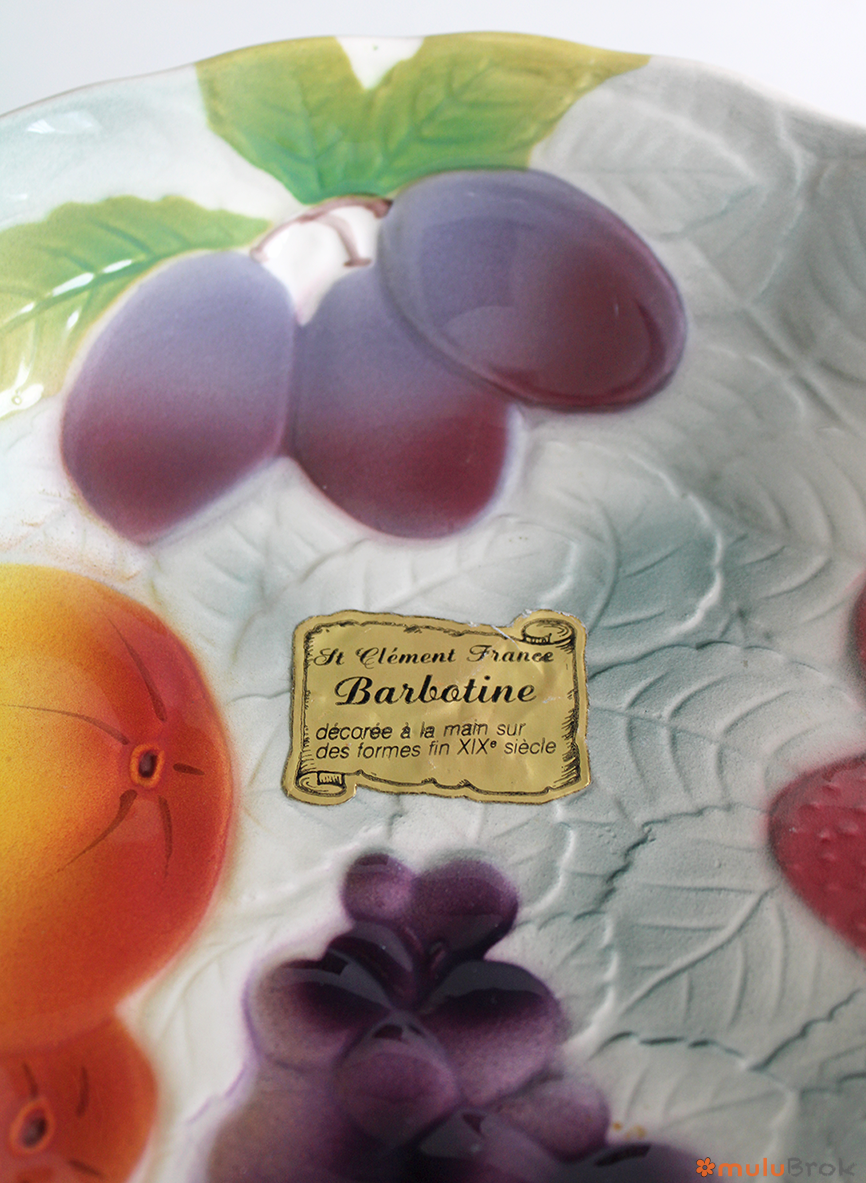 Barbotine, fruits en relief : raisin, prune, fraises, pommes.