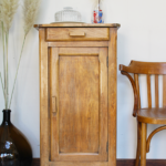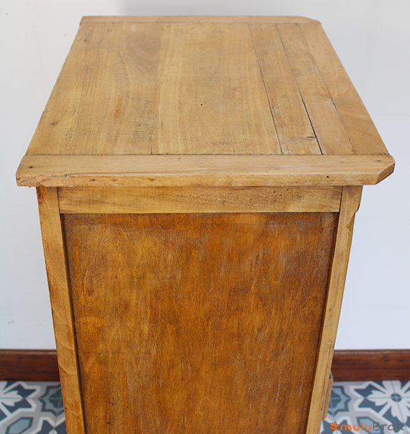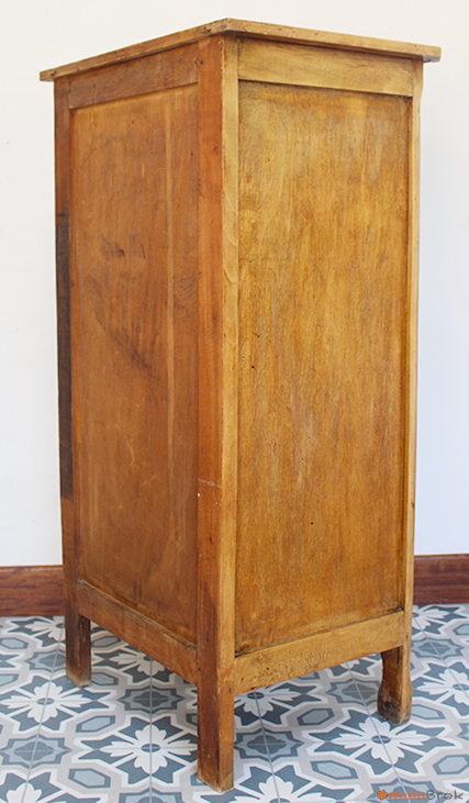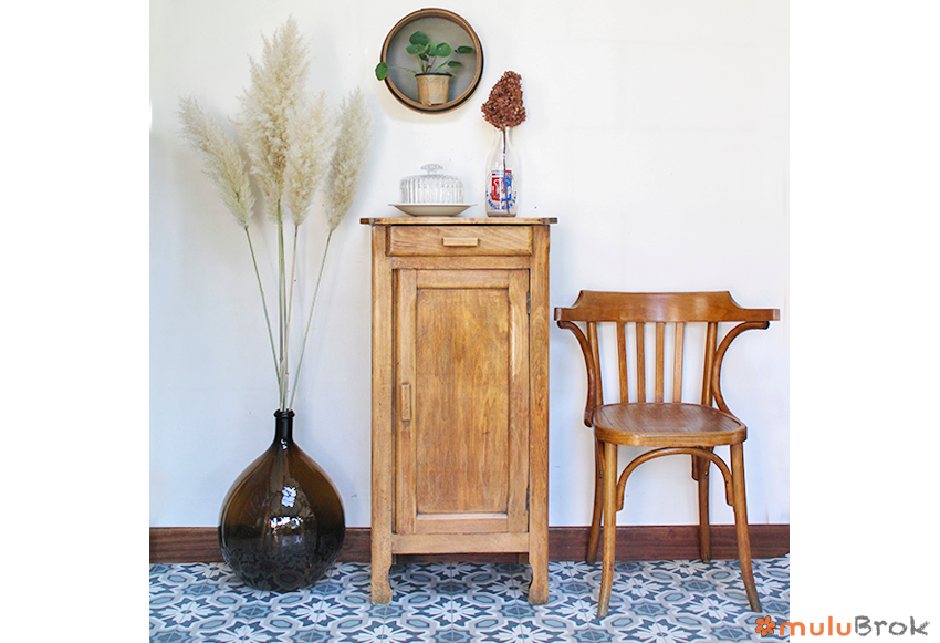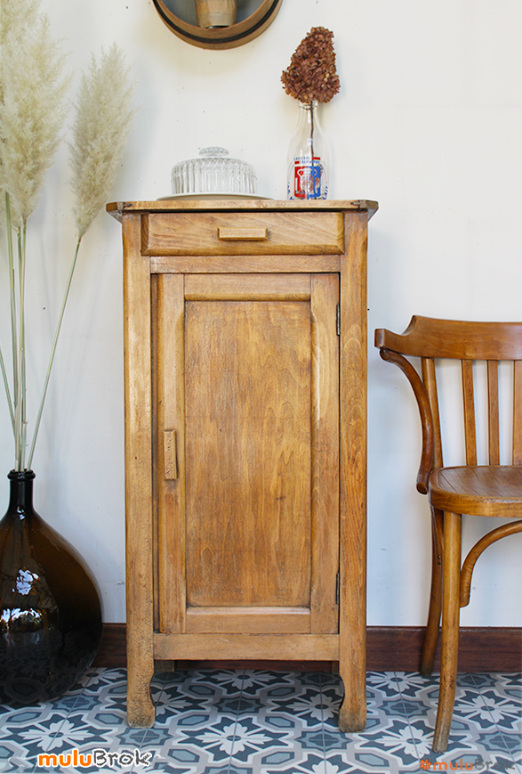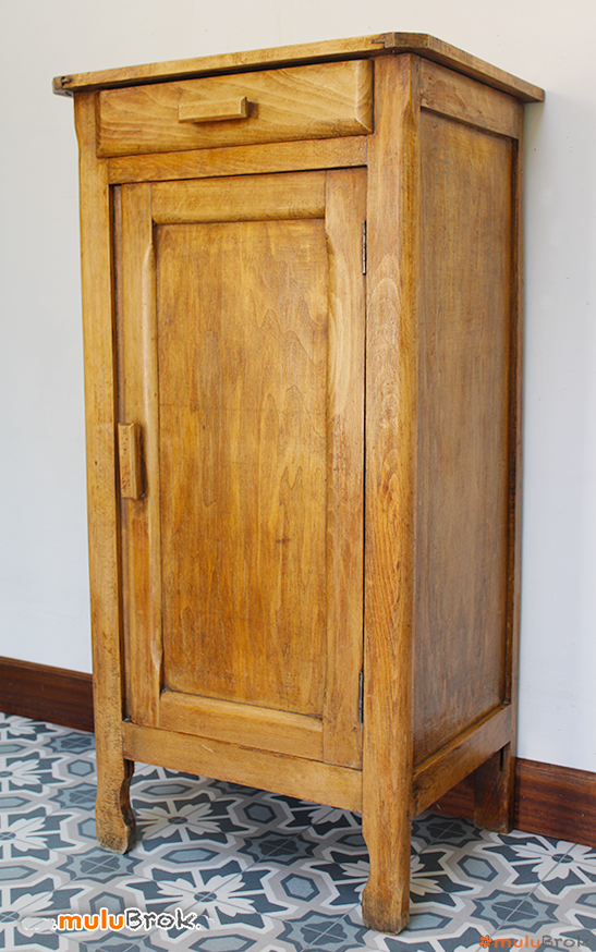 1 porte et 1 tiroir. Les poignées sont en bois.