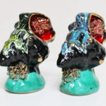 Motif très coloré en bleu ou vert avec dorure.