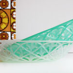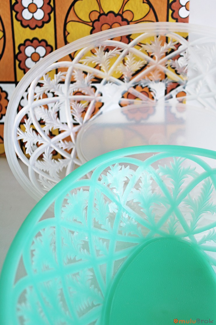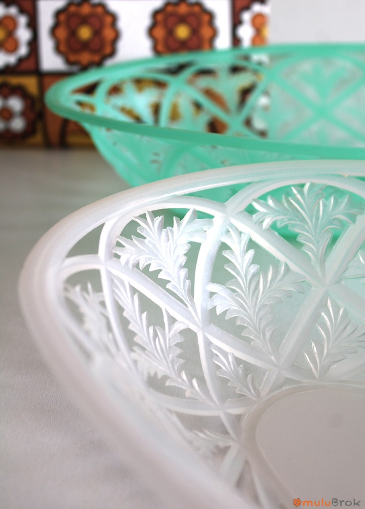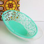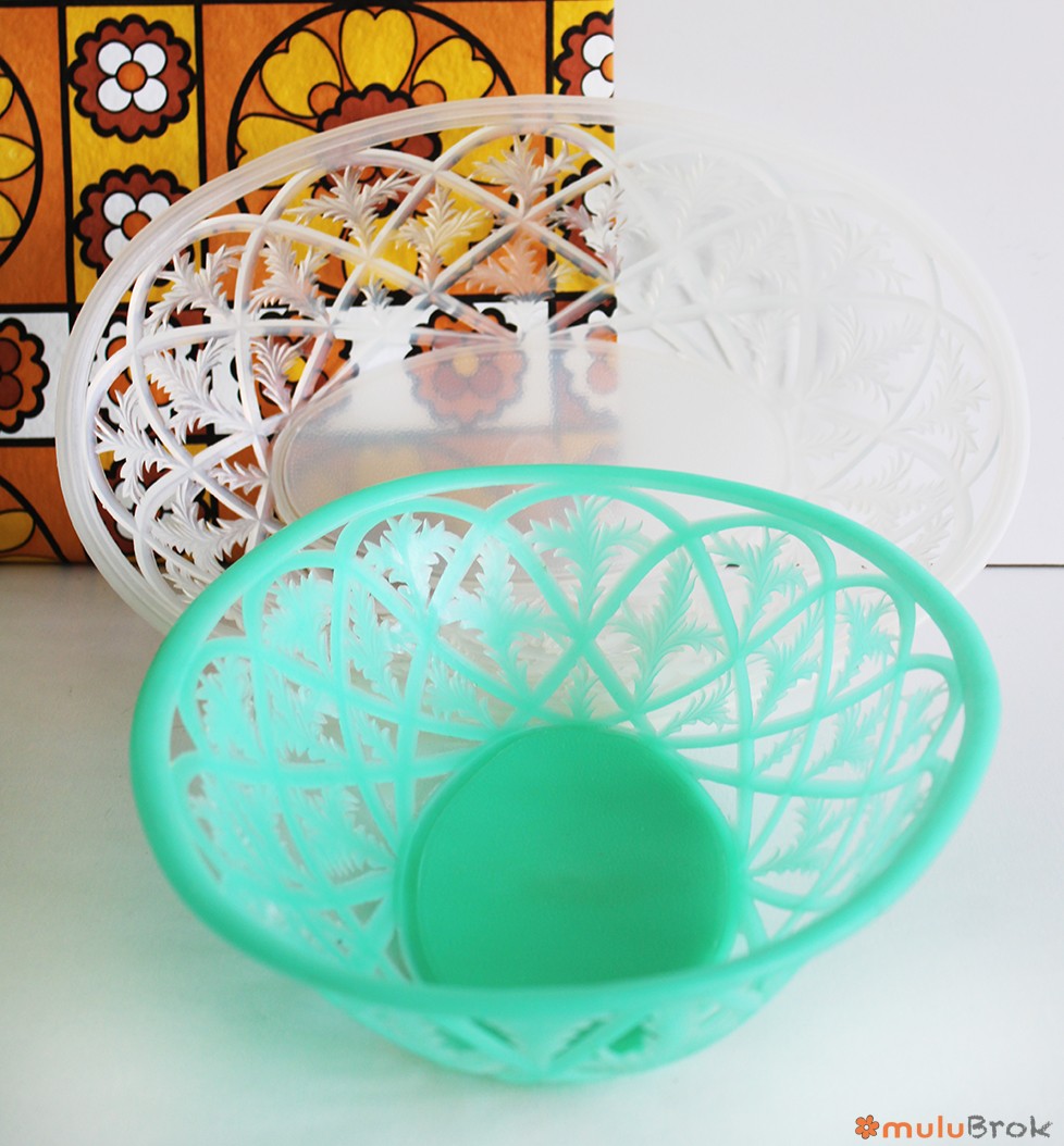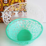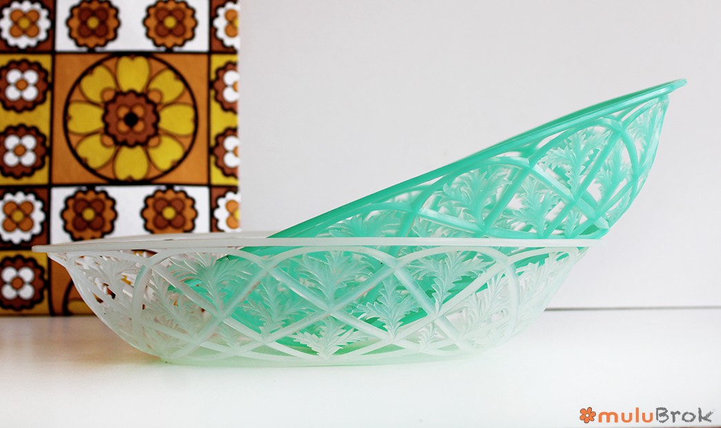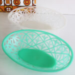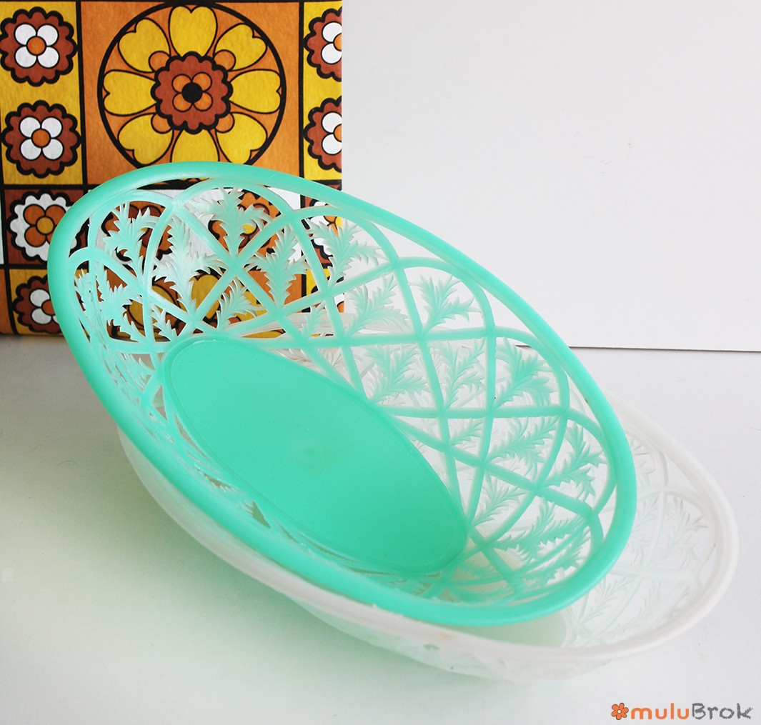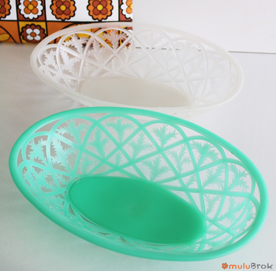 Corbeille ovale en plastique ajouré, décor feuillage.