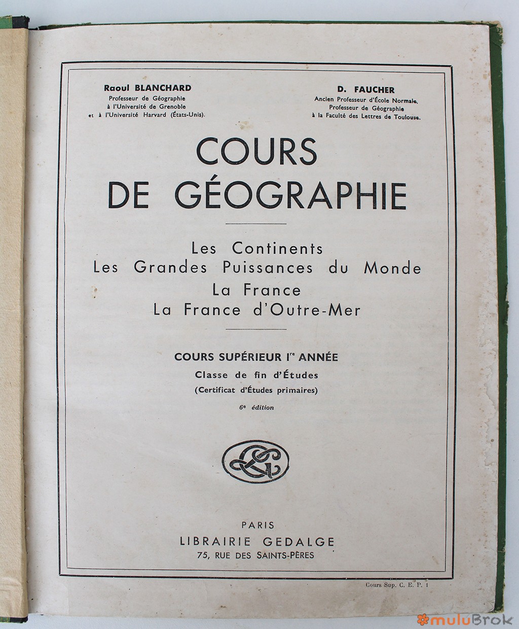Cours supérieur 1ère année du Certificat d’Etudes Primaires.