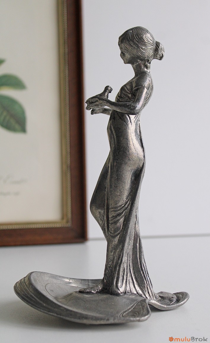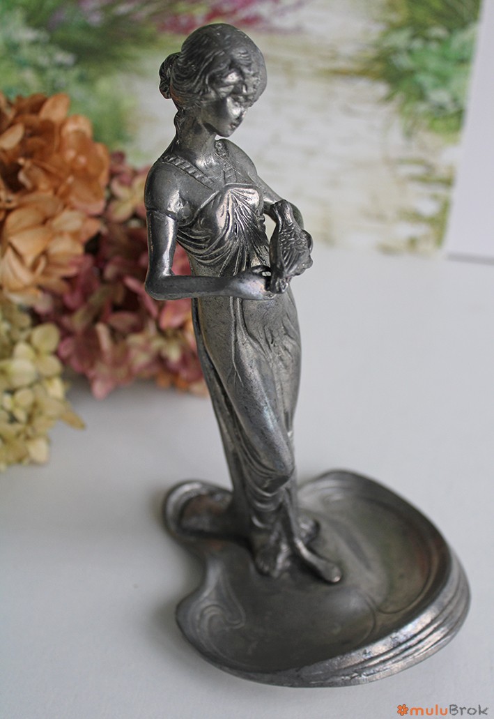 Ravissante statuette représentant une déesse grecque et sa colombe.