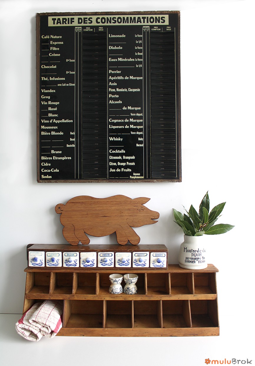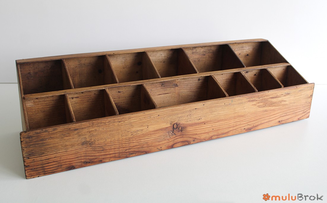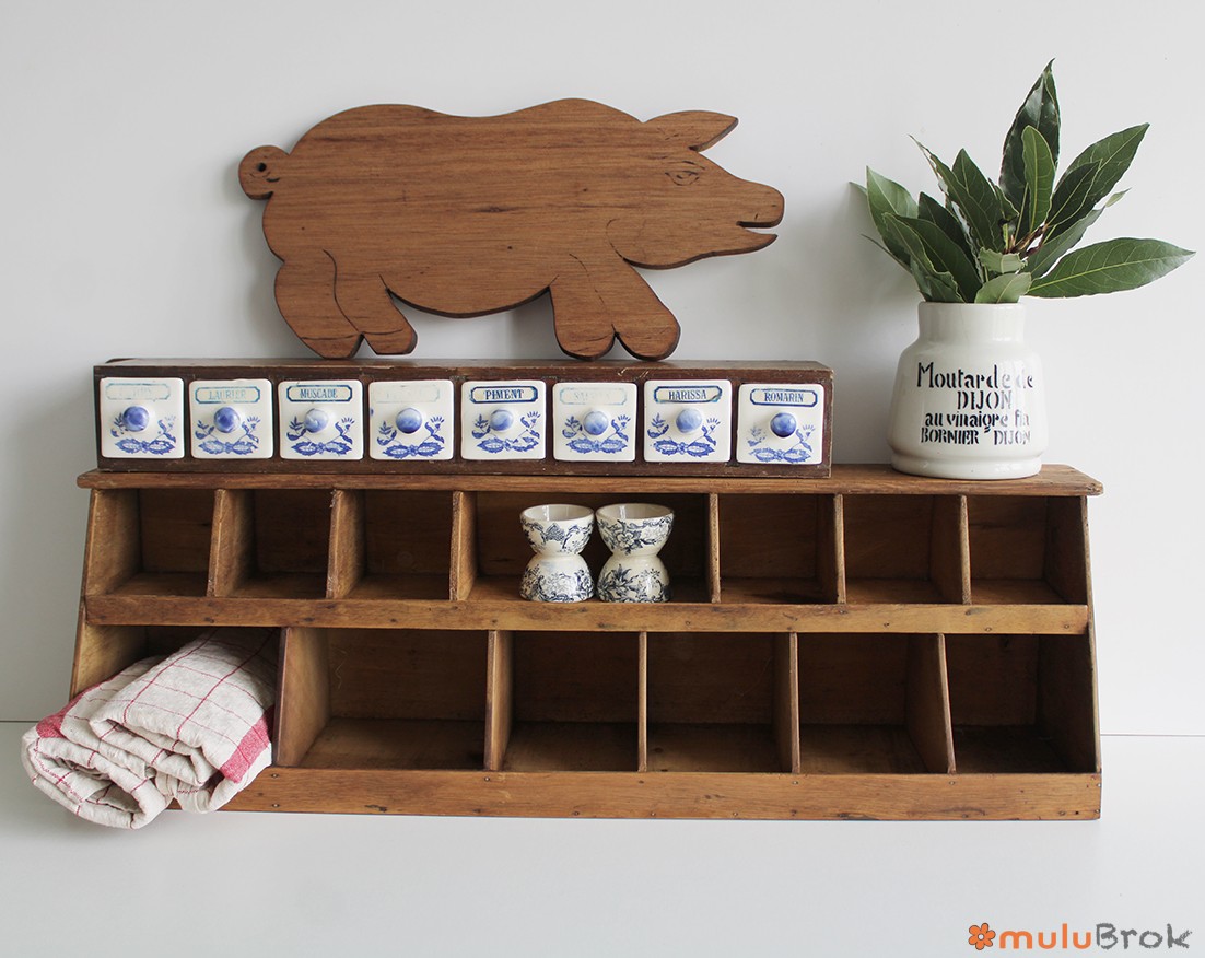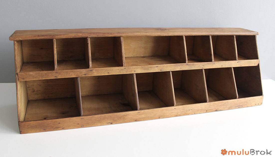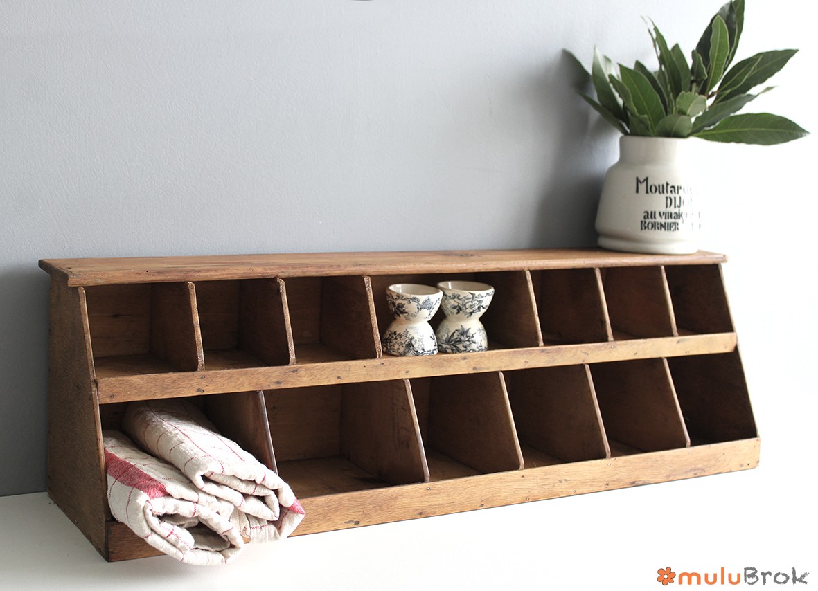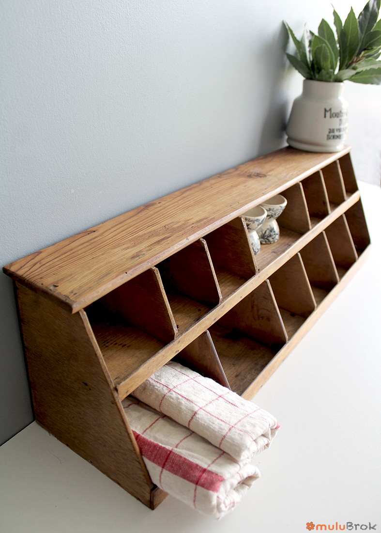 Atelier muluBrok : Ce présentoir a été nettoyé, poncé et teinté.