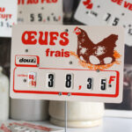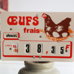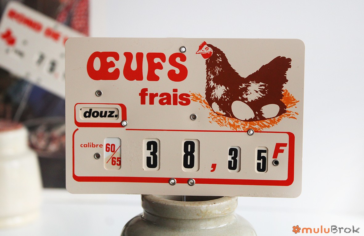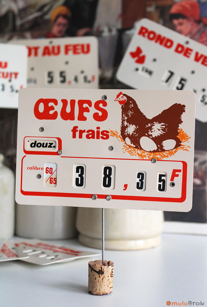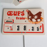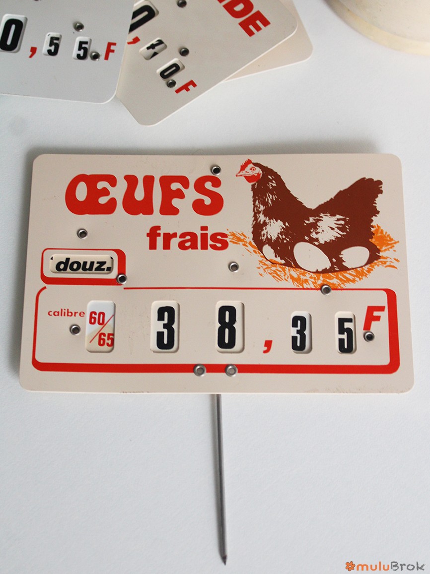 Étiquette en PVC, avec tige en alu, avec le dessin de la poule couveuse.
