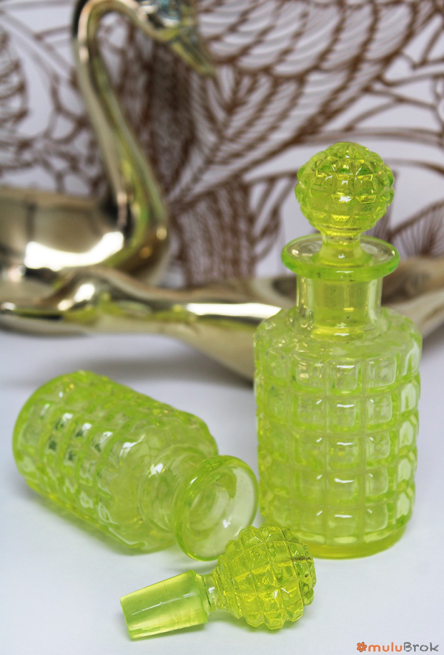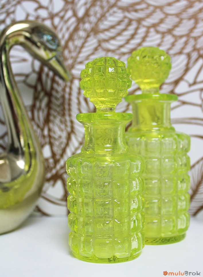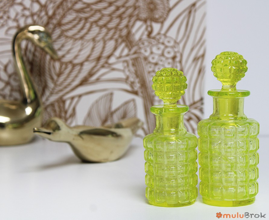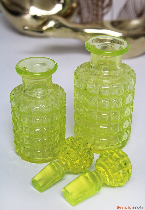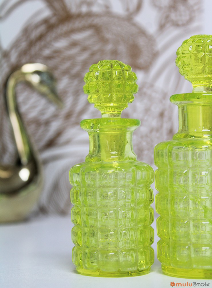 Flacon avec bouchon en verre ouraline jaune.