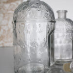 Verre en relief : l’abeille de la marque.