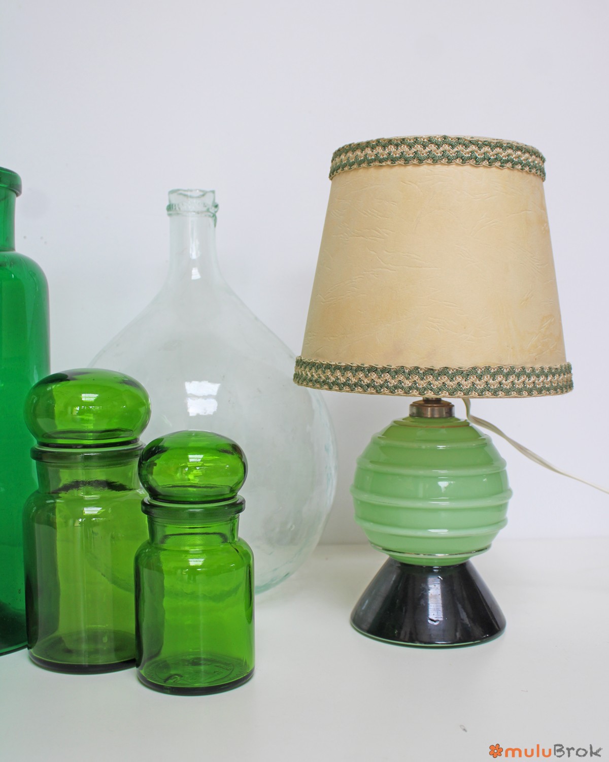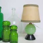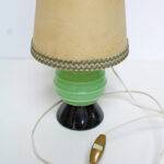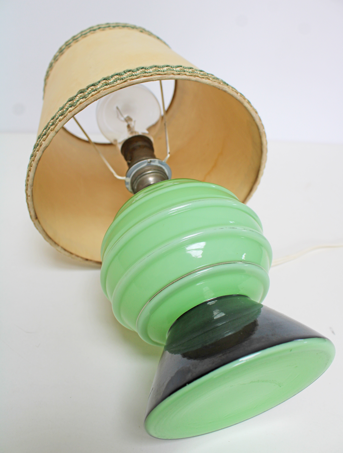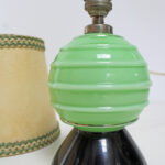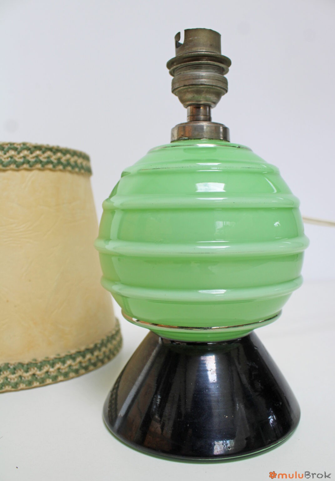 Pied de lampe en opaline noire et vert tendre et liserets.