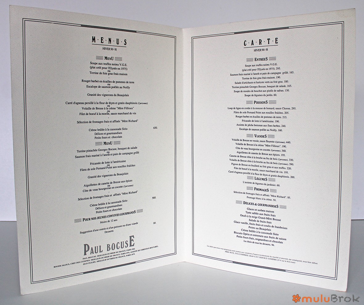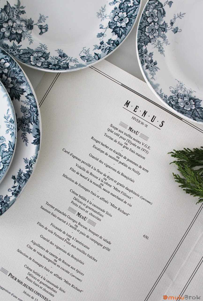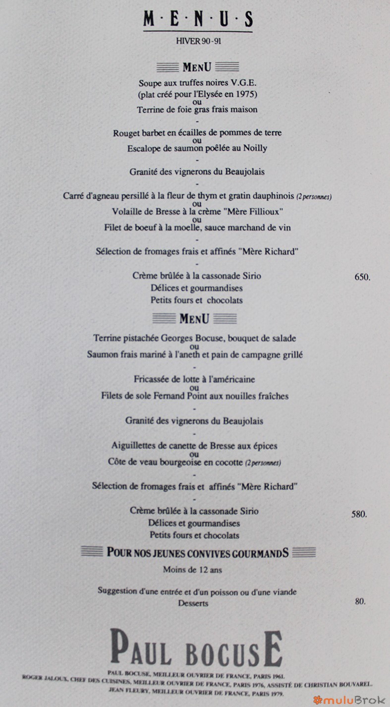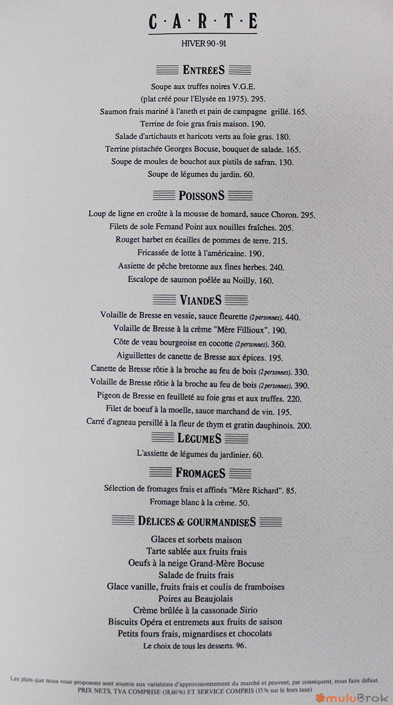 Menus servis pendant l’hiver 1990-1991 dans son auberge située dans le Rhône.