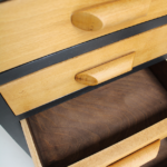 Les tiroirs sont teintés chêne clair puis cirés (produits Libéron).
