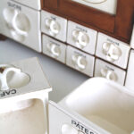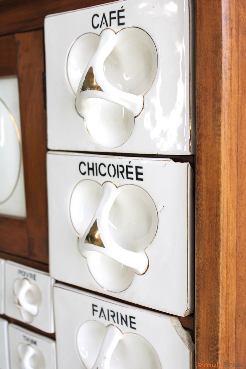 2 tiroirs comportent des angles abimés (farine et chicorée).