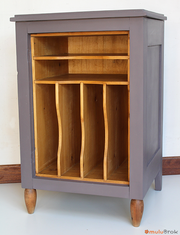 est revisité ici en meuble range-disques 45 et 33 Tours.