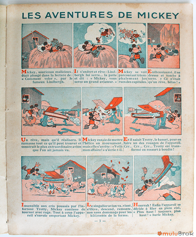 Mickey, souriceau malicieux, était plongé dans la lecture de Comment voler, par le fameux Lindbergh.