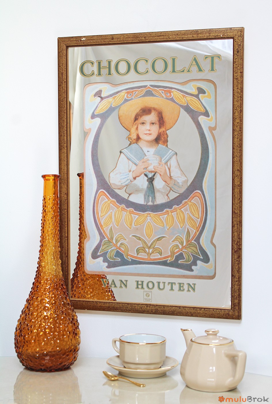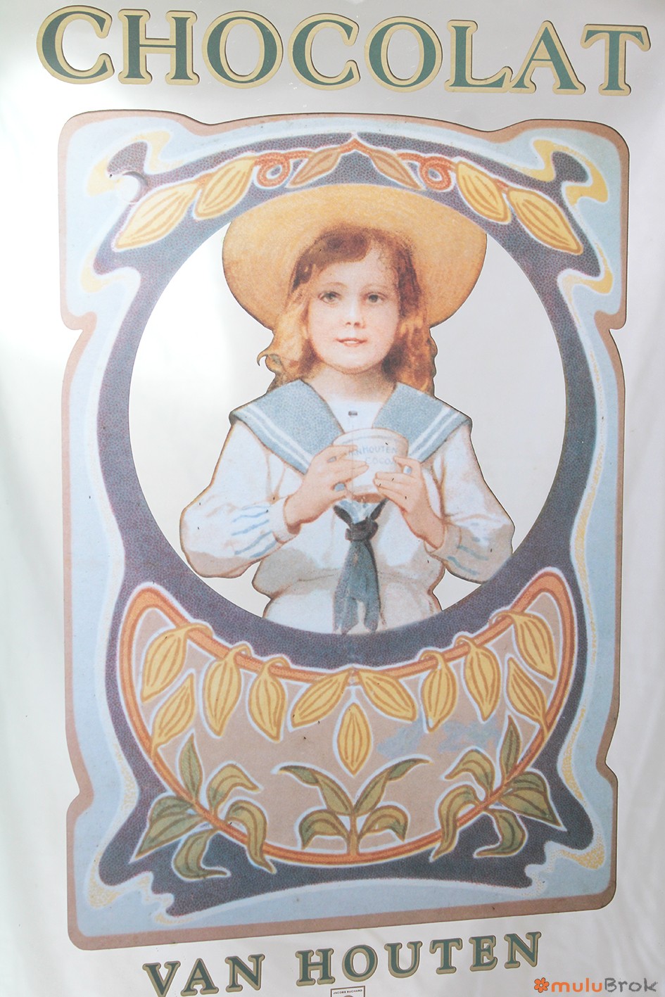 Miroir publicitaire pour le chocolat Van Houten.