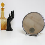 Miroir grossissant , contour circulaire en métal inoxydable.