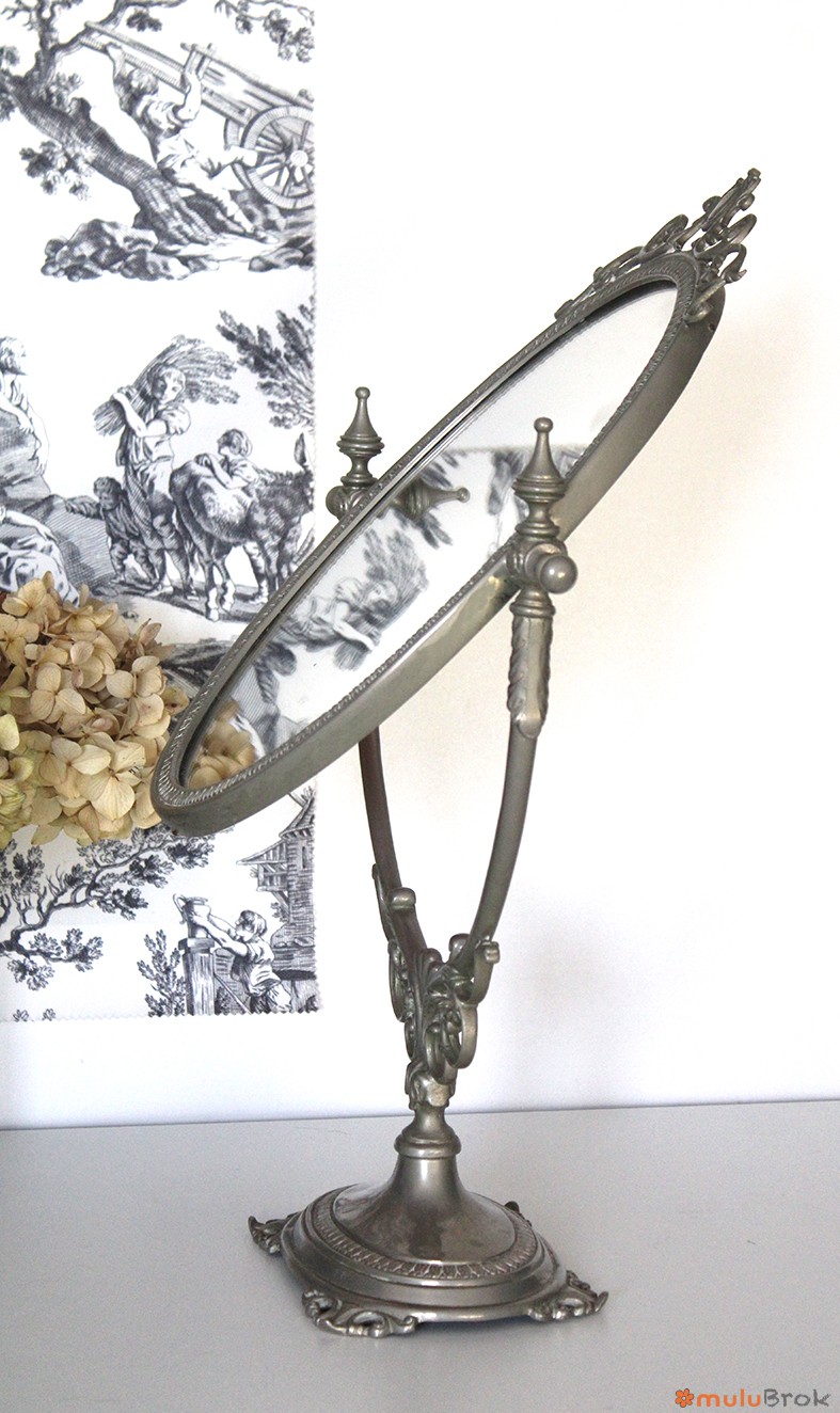 Ancien miroir ovale sur pied, grand modèle.